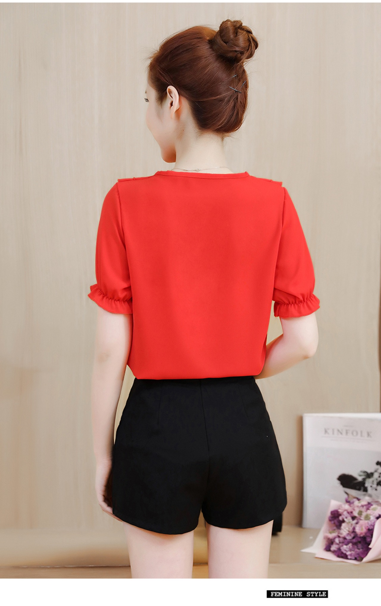 ガーリーでロマンチックな印象のシフォンブラウスです。