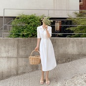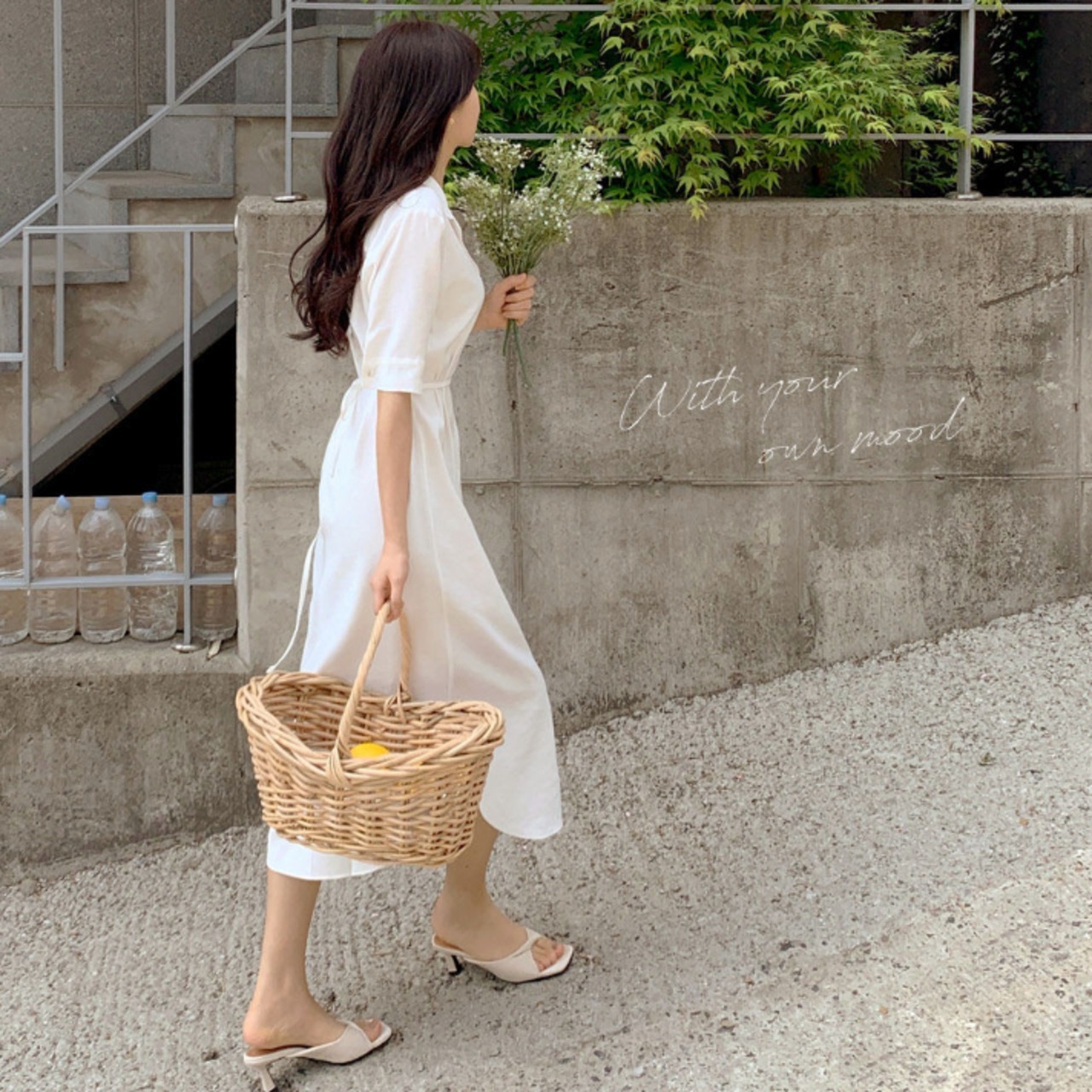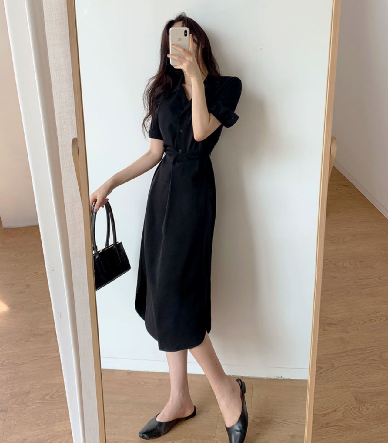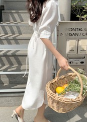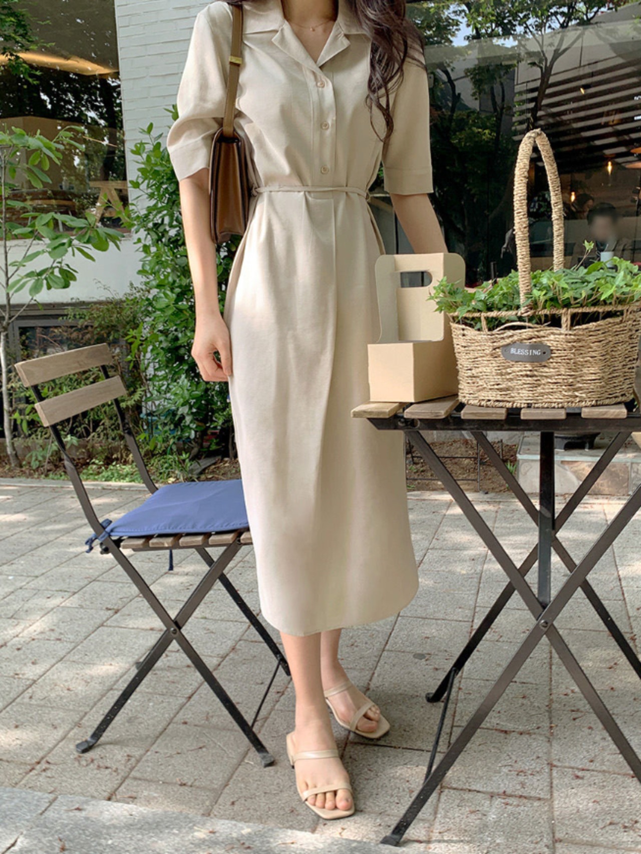 ワンピース シャツワンピース フレアワンピース ミモレ ミモレ丈 袖あり 5分袖 五分袖 Vネック 襟付き スリム 細身 ストレート ウエストマーク ウエストリボン 大人可愛い きれいめ シンプル 大人 上品 おしゃれ お洒落 大人女子 こなれ感 エレガント 無地 春 夏 秋 2022 2023 10代 20代 30代 40代 50代 60代 レディース 女性用 OL 通勤 学生 通学 デート お出かけ 女子会 休日 リゾート 旅行 モテ S M L XL 白 ホワイト 黒 ブラック ベージュ