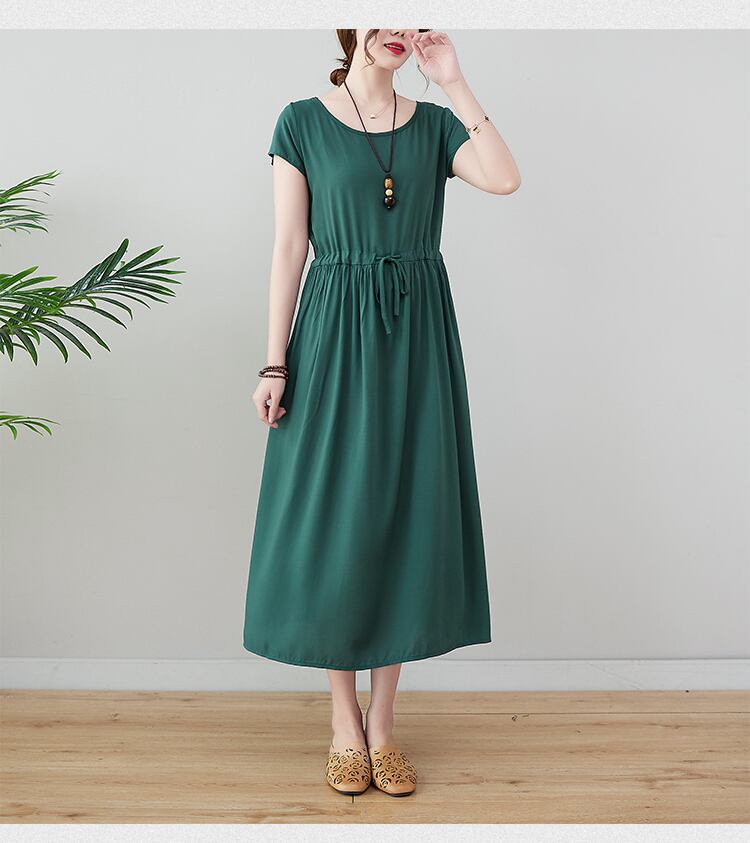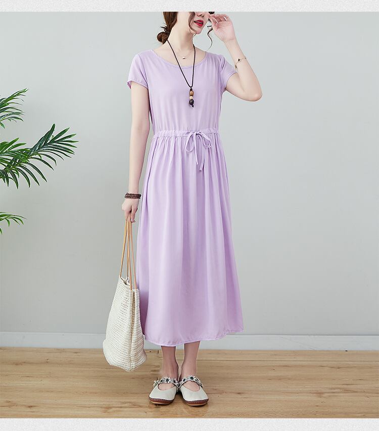 ワンピース ビッグT フレアワンピース 膝下 ミモレ ミモレ丈 袖あり 半袖 ラウンドネック セミフレア Aライン きれいめ シンプル カジュアル 大人 上品 おしゃれ お洒落 大人女子 こなれ感 ラフ とろみ感 抜け感 無地 春 夏 秋 2022 2023 10代 20代 30代 40代 50代 60代 レディース 女性用 お出かけ 休日 楽ちん M L XL 2XL 3XL ゆったり 黒 ブラック 赤 レッド 青 ブルー 緑 グリーン 紫 パープル 茶色 ブラウン 黄色 ピンク