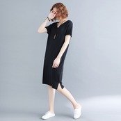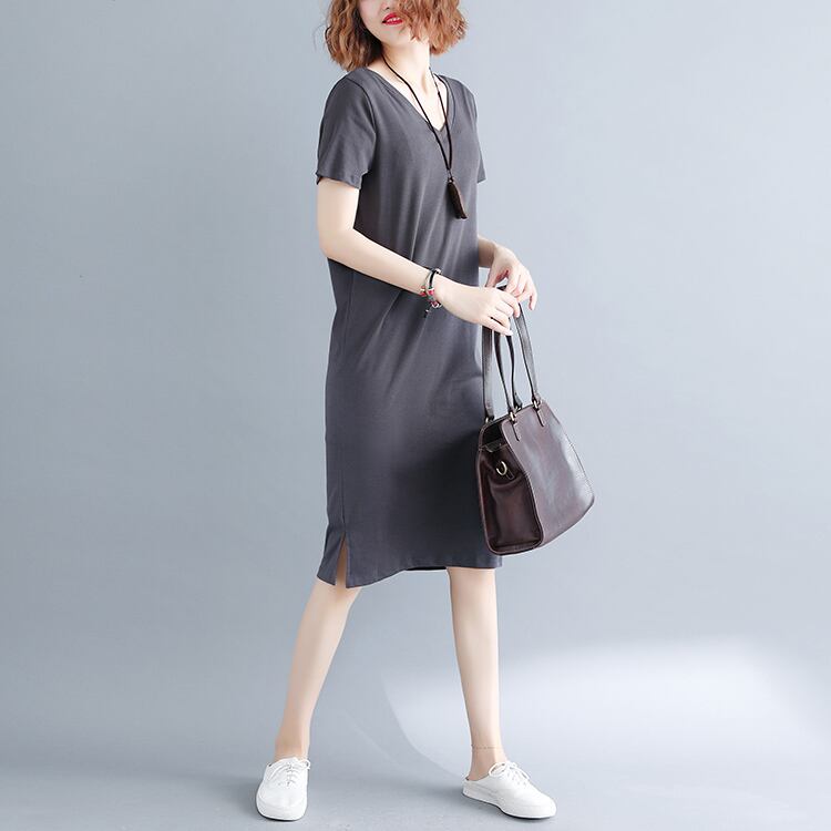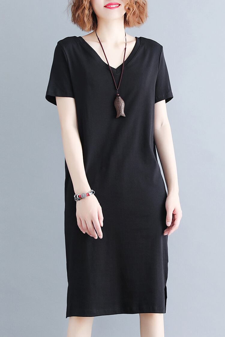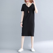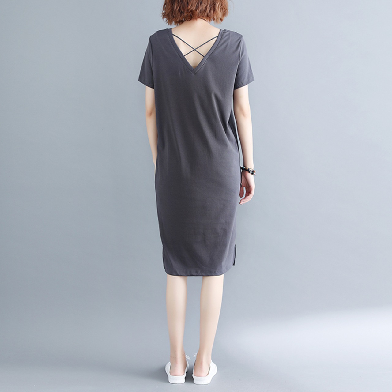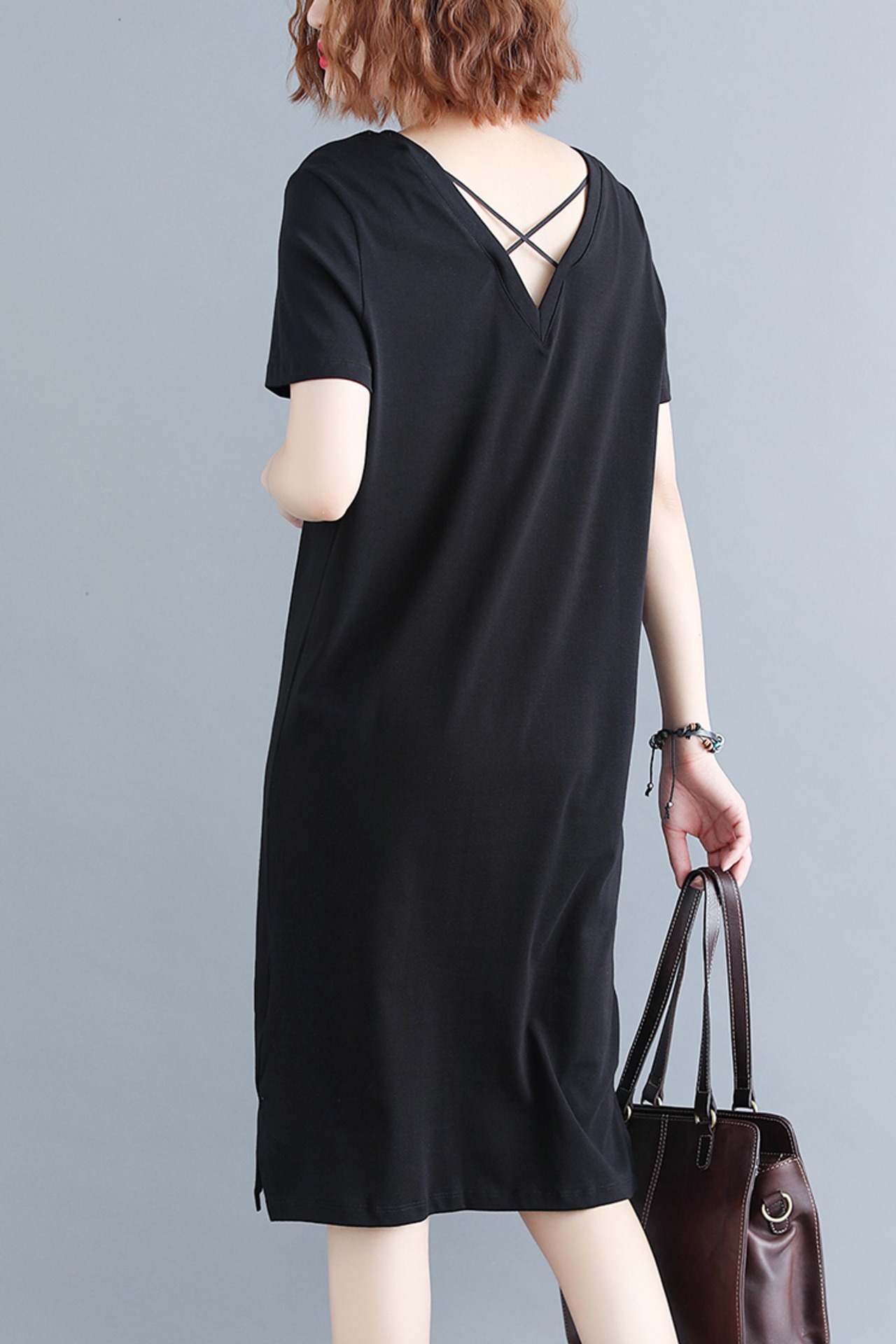 ワンピース ビッグT 膝丈 ひざ丈 膝上 膝下 袖あり 半袖 Vネック スリム ストレート Iライン バックシャン バックコンシャス きれいめ シンプル カジュアル 大人 上品 おしゃれ お洒落 かっこいい 大人女子 こなれ感 ラフ とろみ感 抜け感 無地 春 夏 秋 2022 2023 10代 20代 30代 40代 50代 60代 レディース 女性用 お出かけ 休日 楽ちん XL 2XL 3XL 4XL ゆったり 黒 ブラック 灰色 グレー ピンク