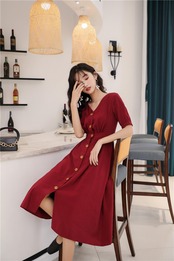 Vネックやセミフレアスカートなど、スタイルを良く見せてくれるデザインになっています。