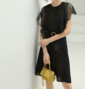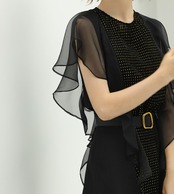 ウエストマークのベルトと袖の透け感がおしゃれなワンピースです。