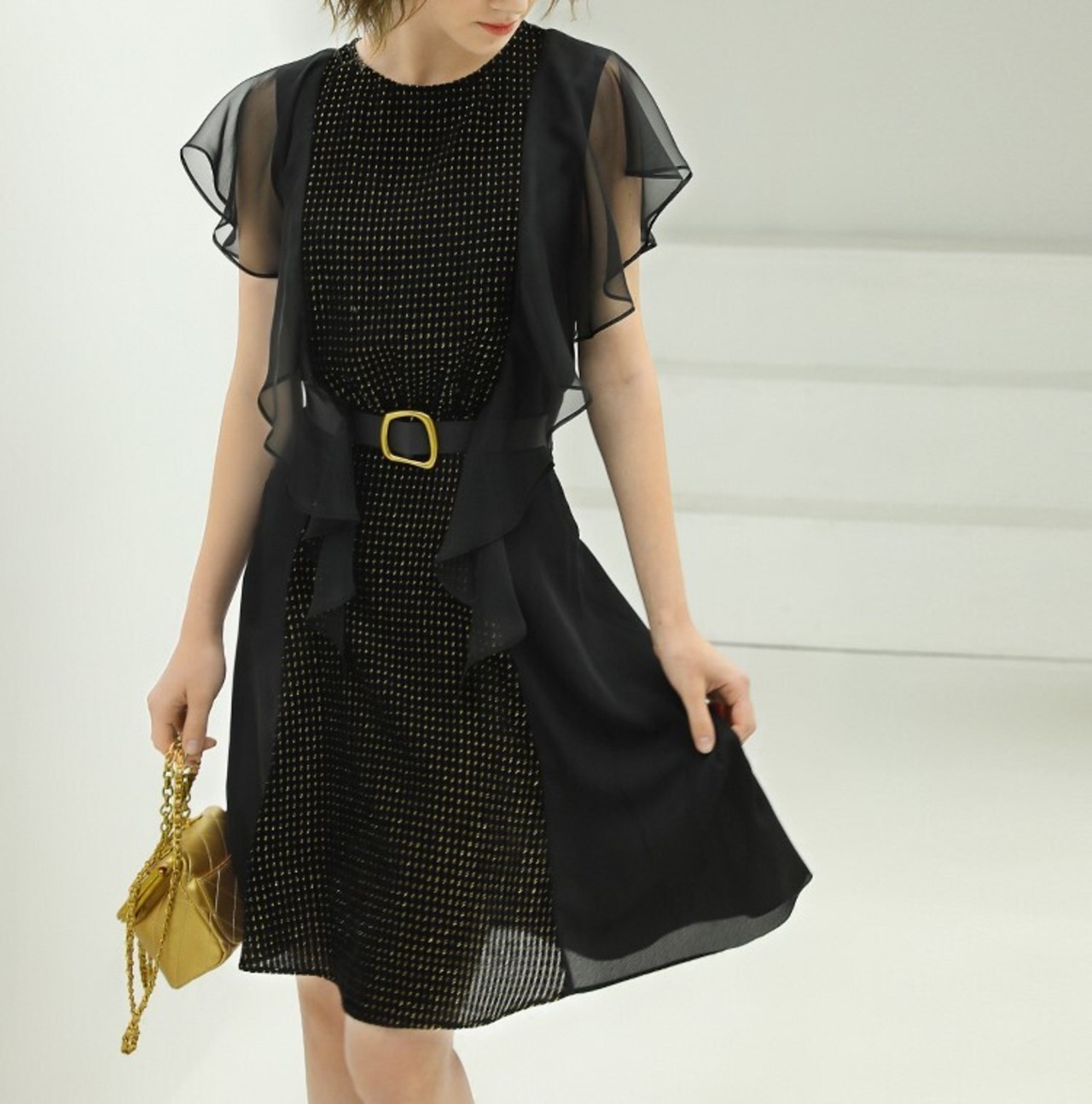 ワンピース フレアワンピース 膝丈 ひざ丈 膝上 袖あり フレアスリーブ セミフレア Aライン 切り替えデザイン チュール シフォン ベルト ウエストマーク 切り替えデザイン 透け感 シースルー かわいい 大人可愛い 大人 おしゃれ お洒落 大人可愛い 大人女子 ラブリー キュート ガーリー セクシー エレガント 主役級 存在感 春 夏 10代 20代 デート お出かけ 女子会 お泊まり 休日 イベント リゾート 旅行 ホテル ガーデン レストラン モテ S M L 黒 ブラック