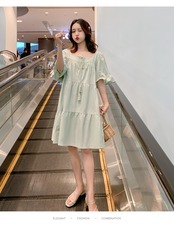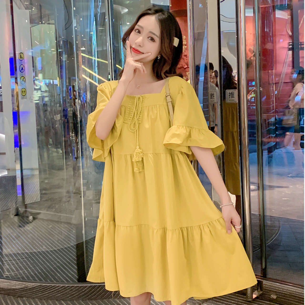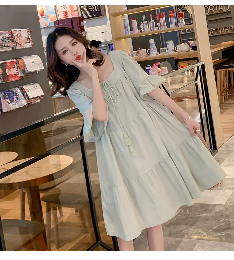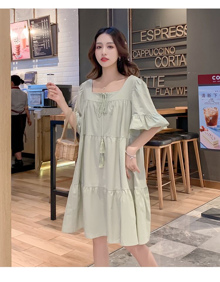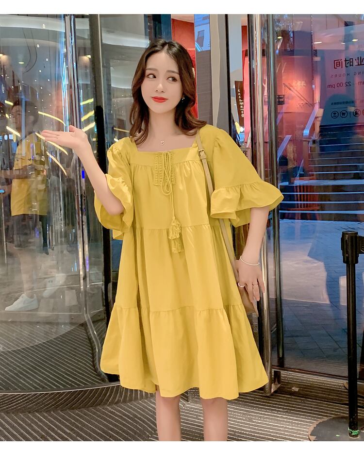 ワンピース フレアワンピース ティアードワンピース 膝丈 ひざ丈 膝上 膝下 袖あり 半袖 ボリューム袖 スクエアネック フレア セミフレア Aライン 大人可愛い おしゃれ お洒落 ラフ ラブリー キュート ガーリー 無地 春 夏 2022 2023 10代 20代 レディース 女性用 キッズ 女の子 デート お出かけ 休日 リゾート 旅行 海 トレンド 流行 M L XL 2XL 緑 グリーン イエロー