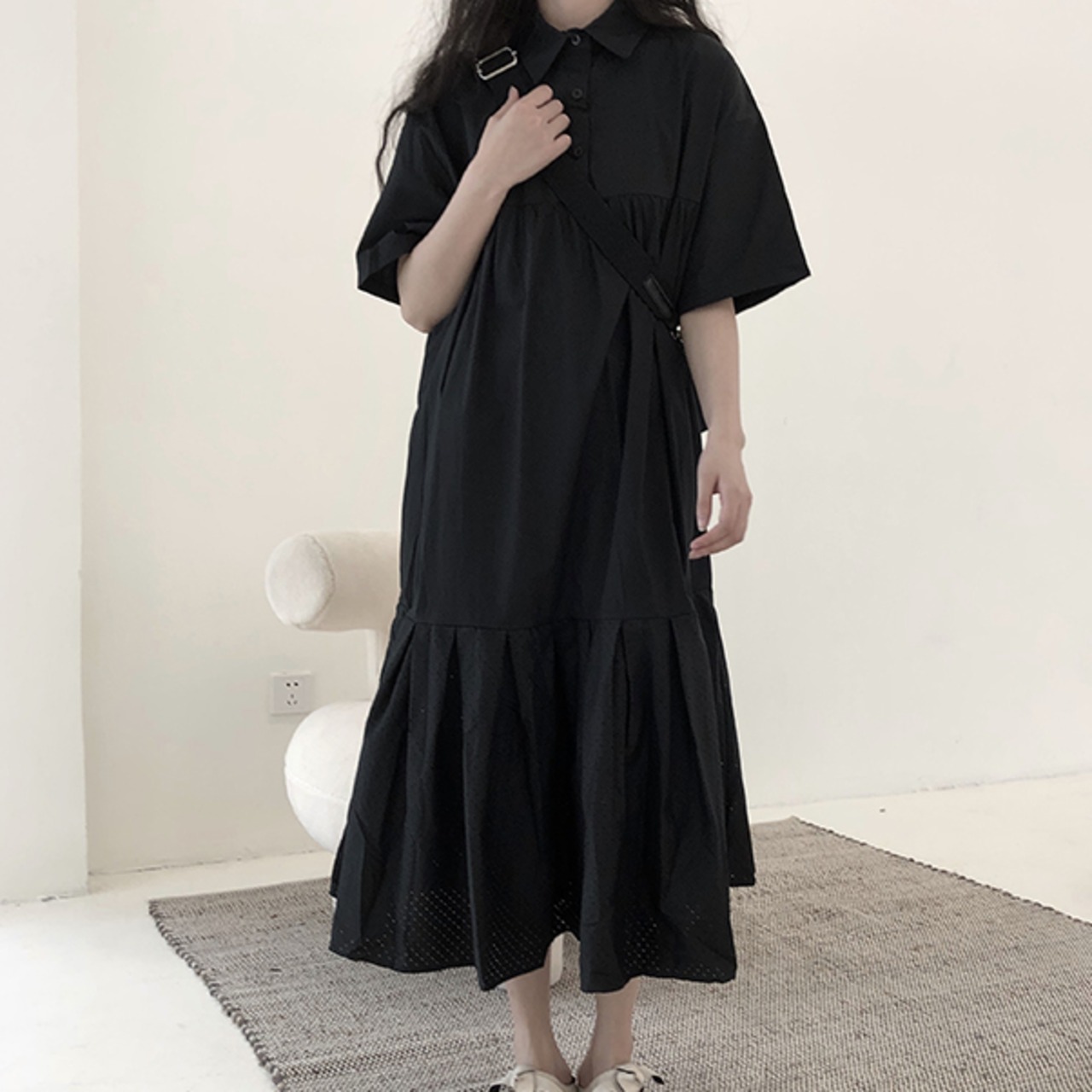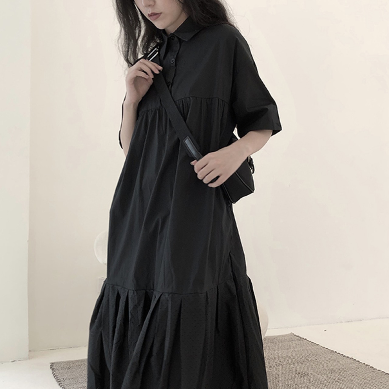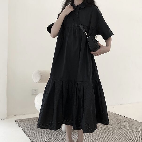 ワンピース シャツワンピース フレアワンピース ロング 袖あり 半袖 シンプル カジュアル 大人 おしゃれ お洒落 大人女子 こなれ感 ラフ とろみ感 抜け感 春 夏 10代 20代 30代 40代 50代 60代 レディース 女性用 ママ マタニティ 女の子 学生 通学 デート お出かけ 公園デビュー 休日 アウトドア リゾート 旅行 ガーデン ファッション コーデ スタイル 楽ちん 体系カバー フリーサイズ ゆったり 黒 ブラック