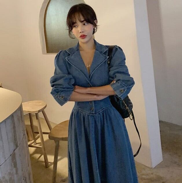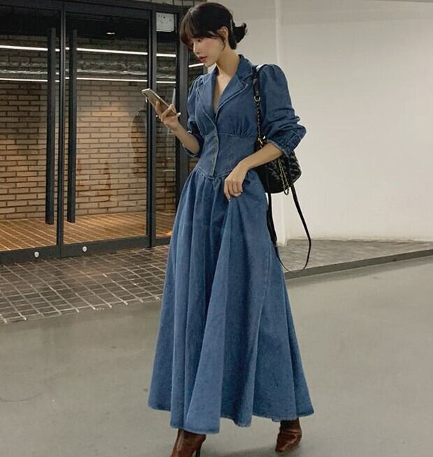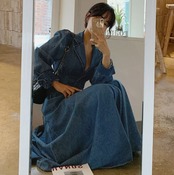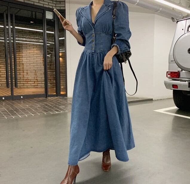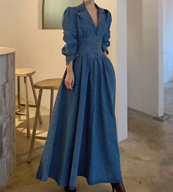 ワンピース デニムワンピース ミモレ ミモレ丈 9分丈 アンクル丈 7分丈 ミディアム丈 袖あり 長袖 Vネック 襟付き タイト Aライン ウエストマーク 切り替えデザイン ハイウエスト 前開き デニム ブルーデニム かわいい 大人可愛い シンプル カジュアル 大人 おしゃれ お洒落 レトロ 大人可愛い 大人女子 こなれ感 ラフ 個性的 主役級 存在感 無地 春 秋 冬 10代 20代 レディース 女性用 デート お出かけ 女子会 お泊まり 休日 リゾート 旅行 コーデ スタイル S M L XL