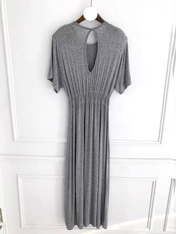 Tシャツ生地で楽ちんな着心地なロング丈ワンピースです。