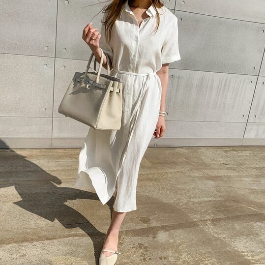 ワンピース シャツワンピース 膝下 ミモレ ミモレ丈 袖あり 半袖 襟付き ワイド Aライン Iライン ウエストマーク ウエストリボン 前開き 大人可愛い きれいめ シンプル カジュアル 大人 おしゃれ 大人女子 こなれ感 ラフ とろみ感 抜け感 無地 春 夏 2022 2023 10代 20代 30代 40代 50代 60代 レディース 女性用 ママ マタニティ お出かけ 休日 アウトドア リゾート 旅行 スタイル 楽ちん 体系カバー S M L XL 白 ホワイト 黒 ブラック ベージュ