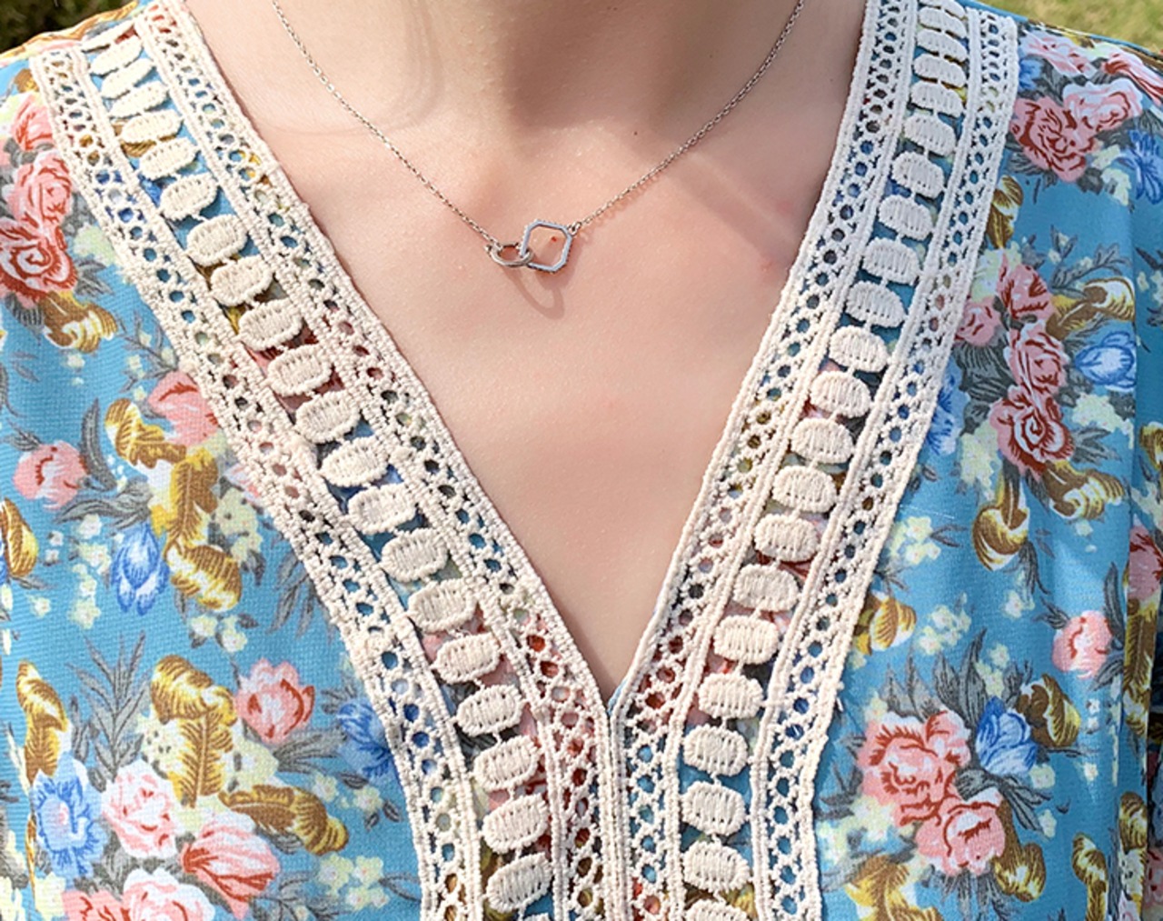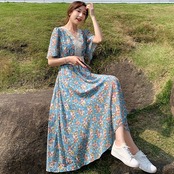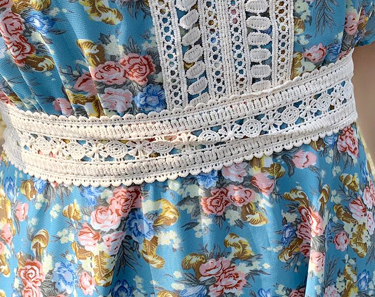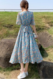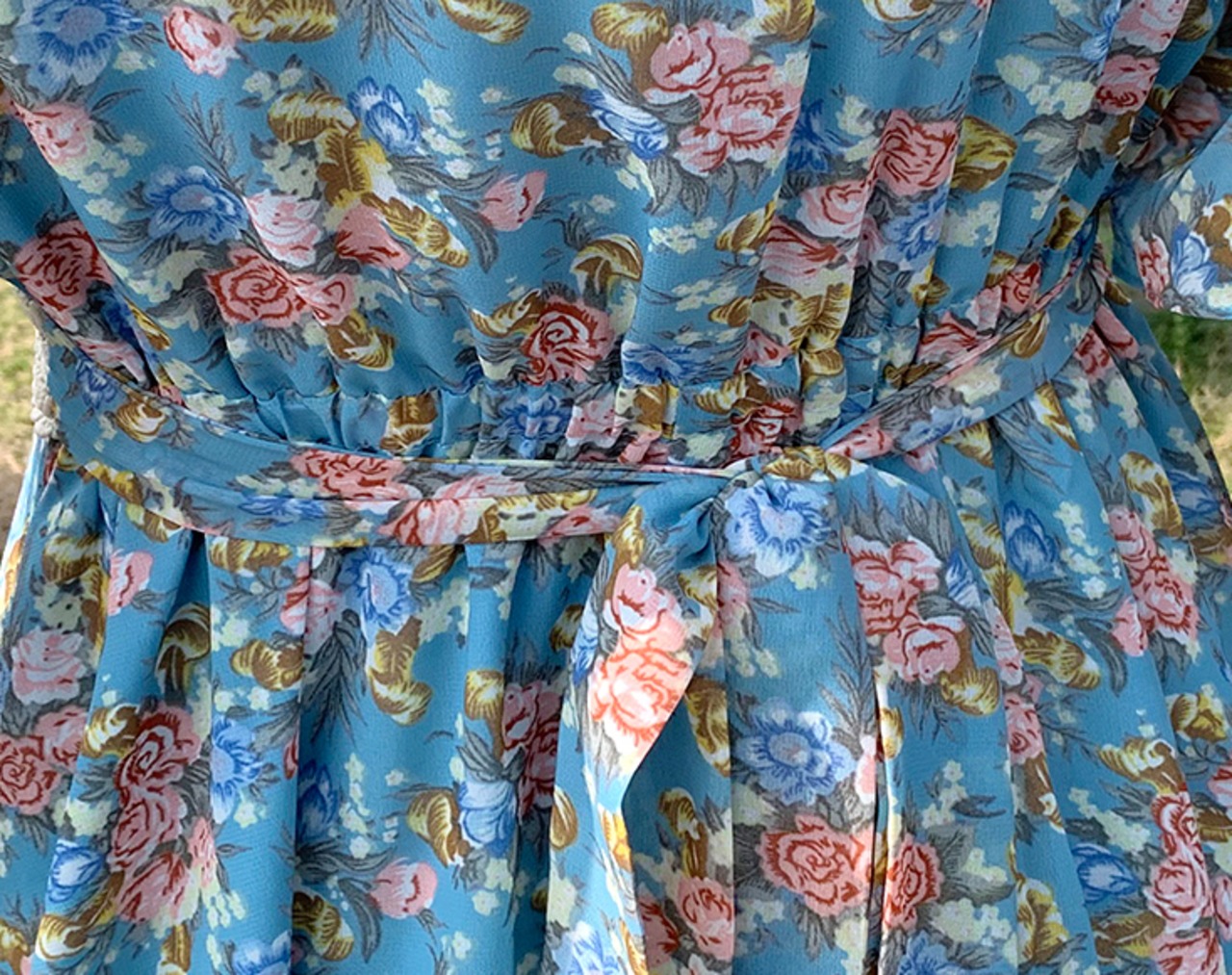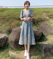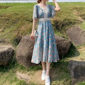 爽やかなブルーに小花柄が可愛らしさ満点のワンピースです。