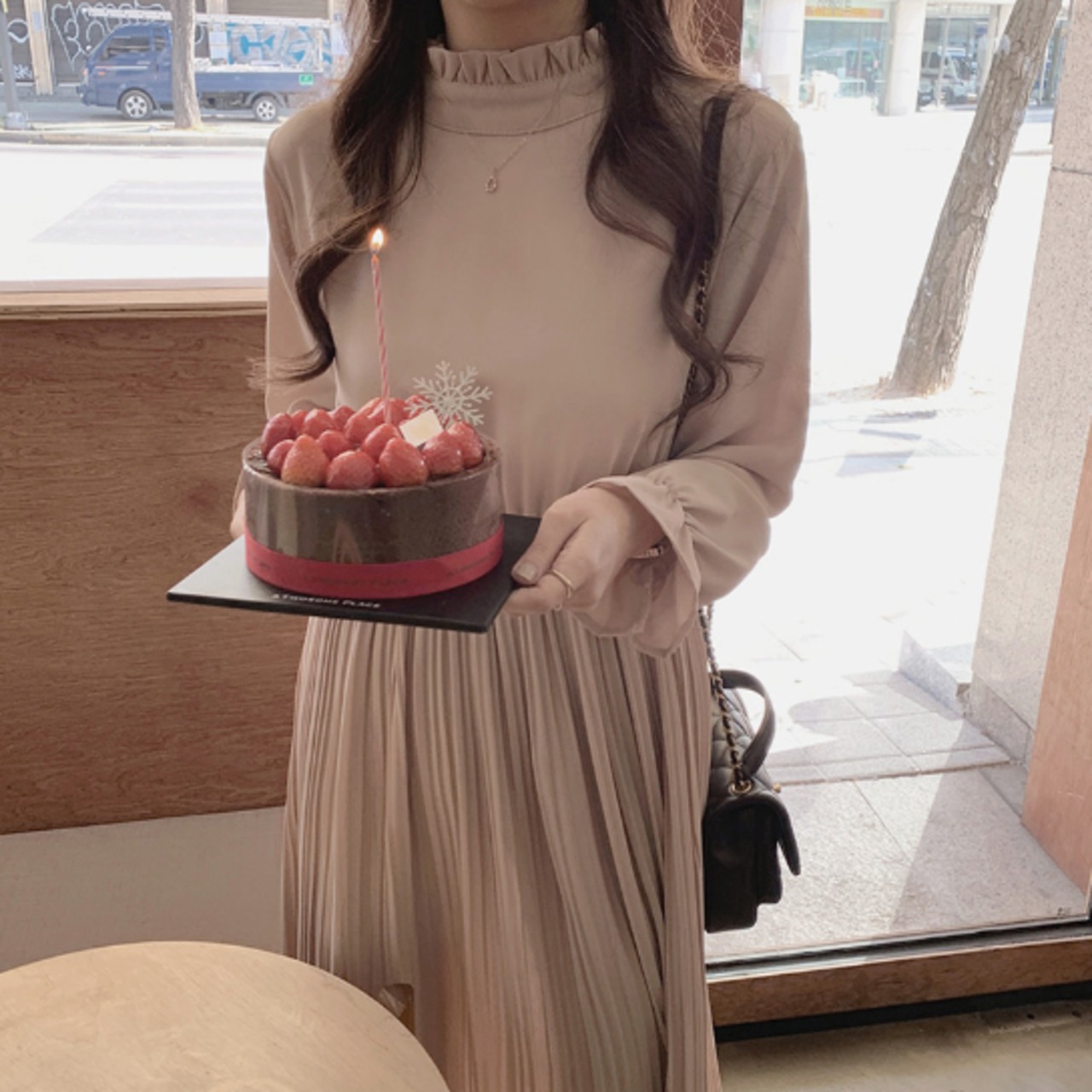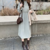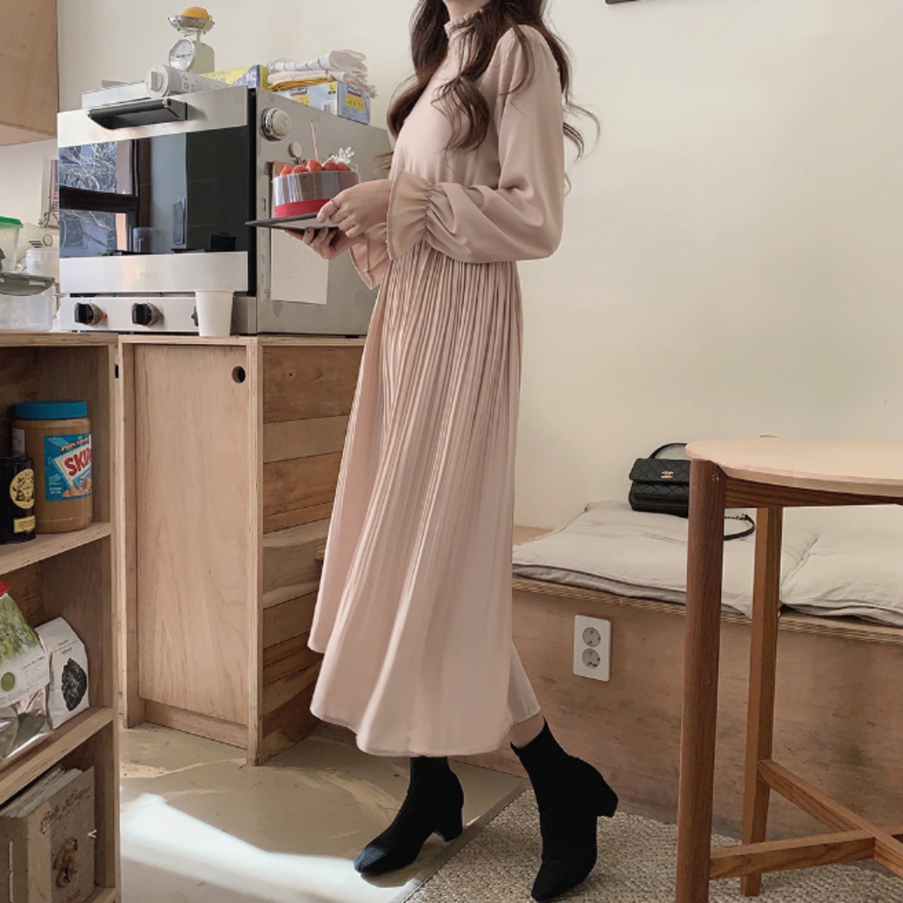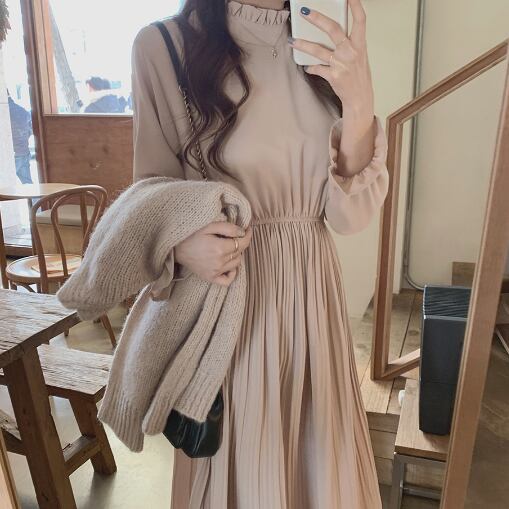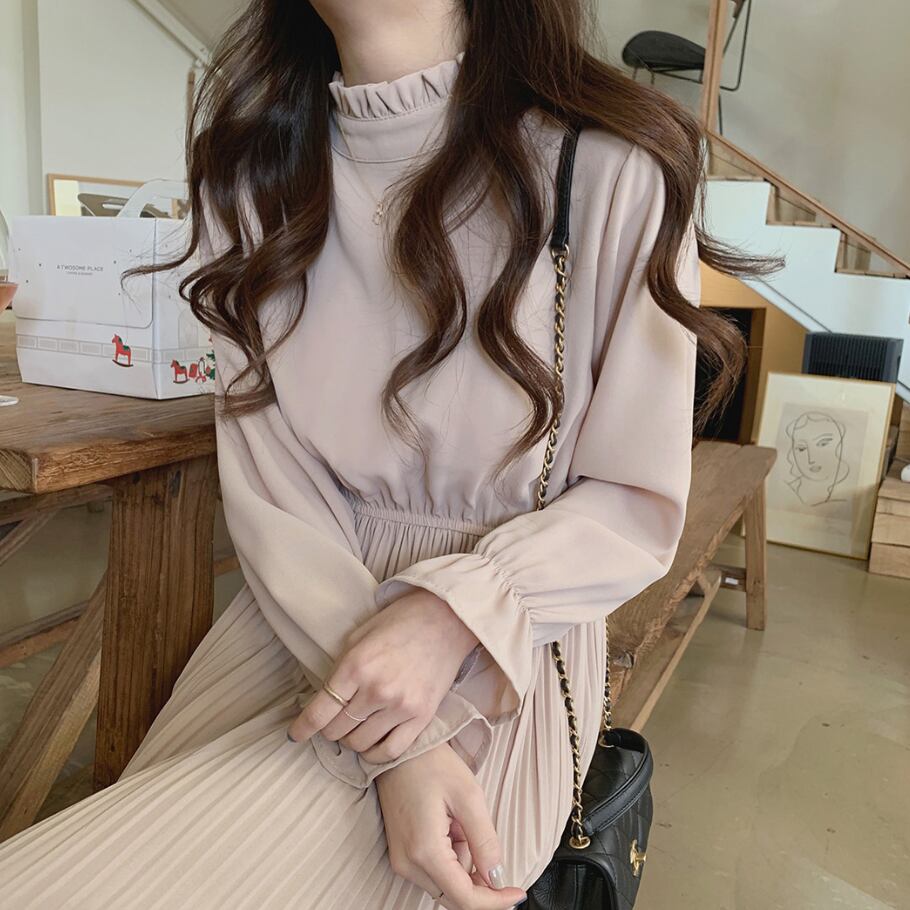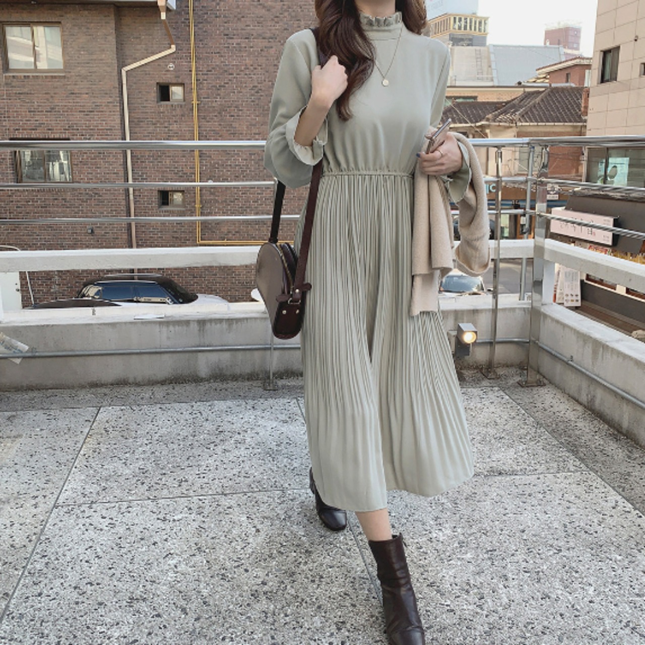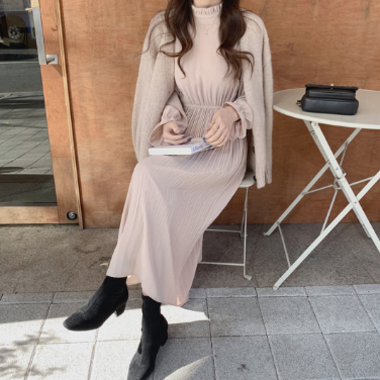 ワンピース プリーツ Aライン ミモレ丈 長袖 フレアスリーブ ラウンドネック フレア シフォン ハイウエスト 無地 大人可愛い きれいめ シンプル 大人 上品 おしゃれ フェミニン レトロ 大人女子 こなれ感 ガーリー とろみ感 抜け感 ナチュラル ベーシック クラシカル 華やか ロマンティック 春 秋 レディース オフィス ビジネス OL 通勤 学生 通学 デート お出かけ 公園デビュー 女子会 お泊まり 休日 旅行 ホテル レストラン 着回し 普段使い モテ きちんと感 くすみカラー