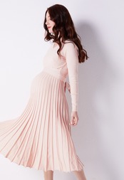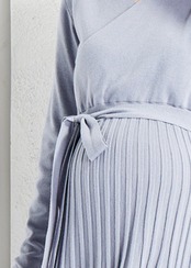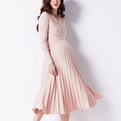 ニット素材でやさしい着心地のきれいめマタニティワンピースです。