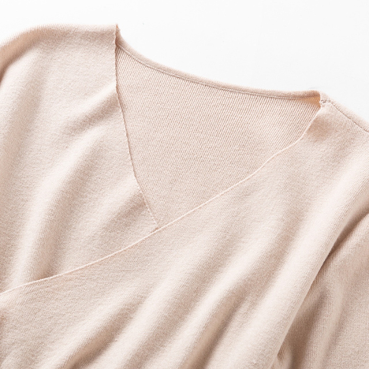 カシュクールとリボンでサイズを調整できるので、妊娠初期からから産後まで重宝します◎