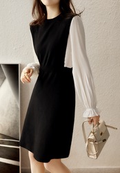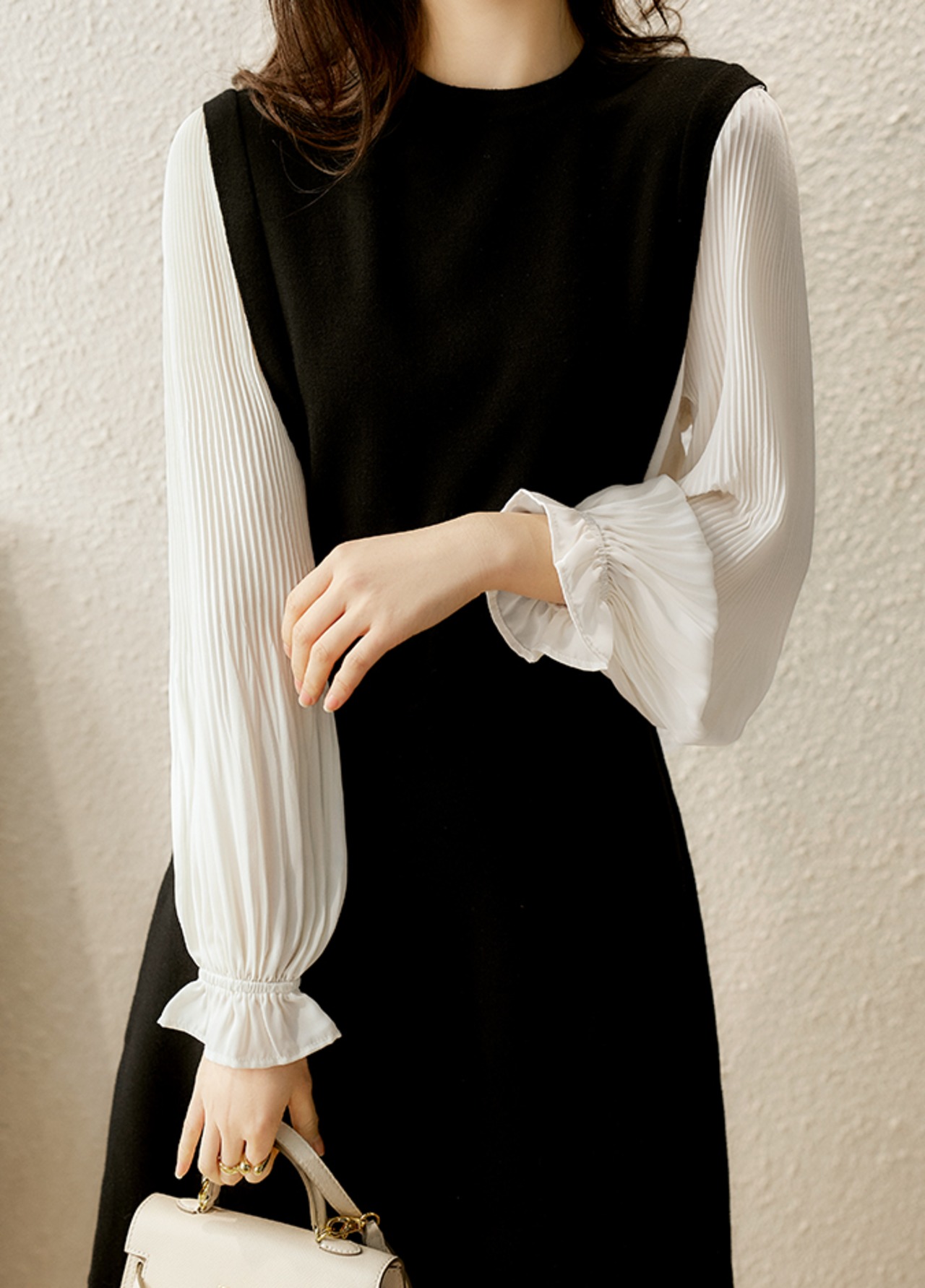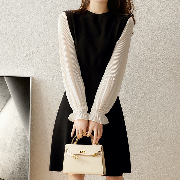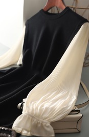 ワンピース ワンピドレス プリーツ Aライン ひざ丈 ミディアム丈 長袖 ランタンスリーブ ラウンドネック 切り替えデザイン シフォン 無地 かわいい 大人可愛い きれいめ シンプル 大人 上品 おしゃれ フェミニン レトロ 大人女子 キュート ガーリー 存在感 フォーマル とろみ感 抜け感 シック ナチュラル クラシカル 華やか ロマンティック 春 秋 冬 レディース デート お出かけ 女子会 お泊まり 休日 パーティー イベント 旅行 着回し 普段使い 華奢見え コーデ モテ 美脚