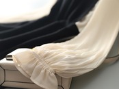 スカートのなめらかな生地とシフォンプリーツのランタンスリーブの組み合わせが可愛い1着♡