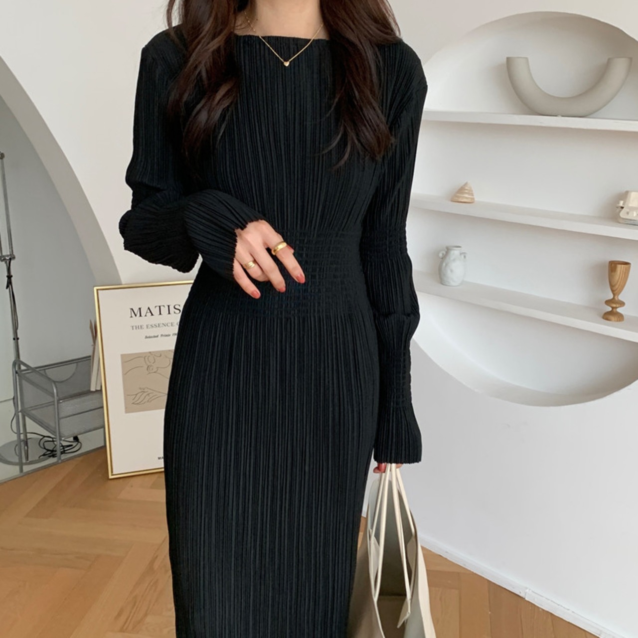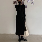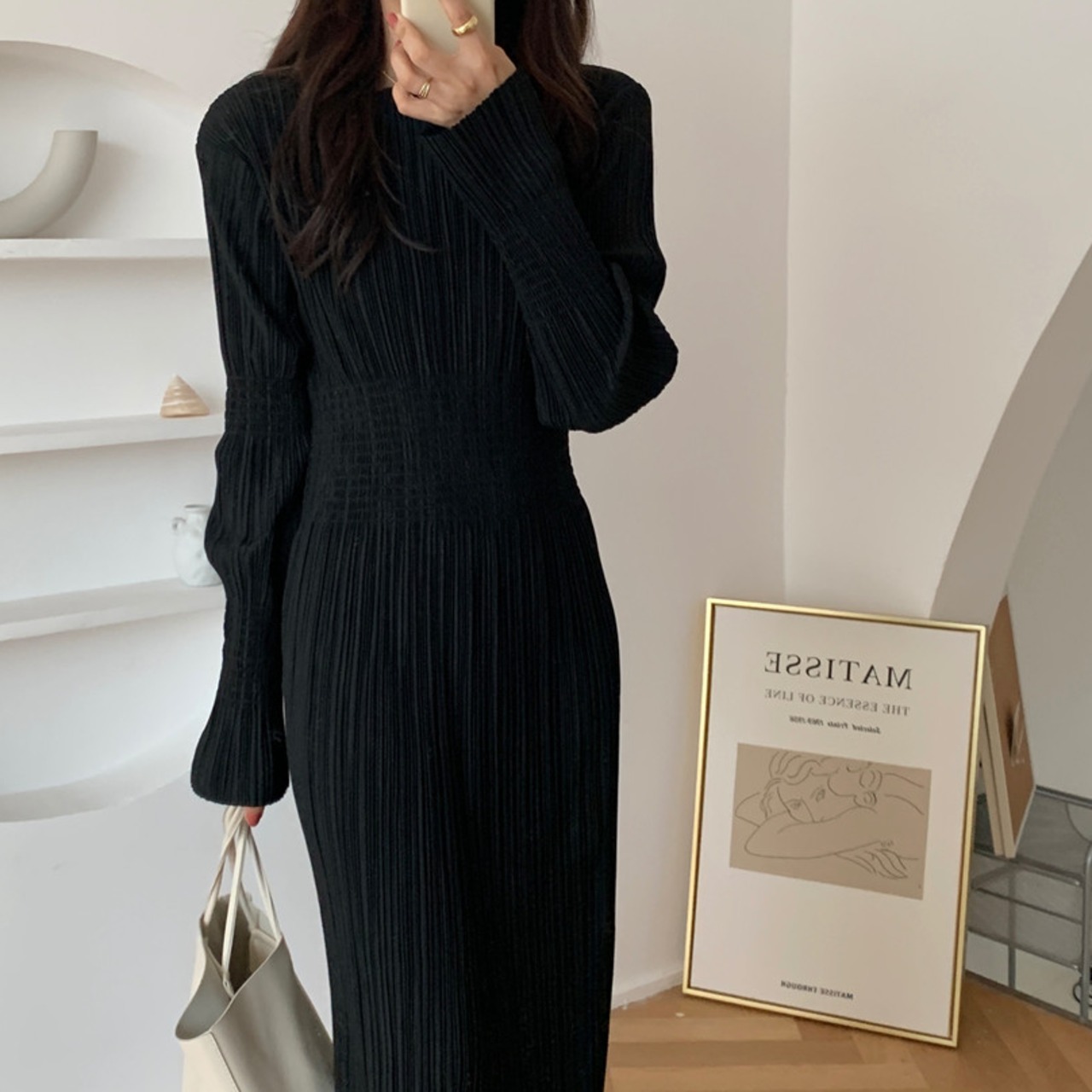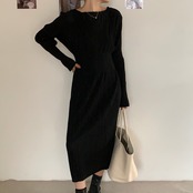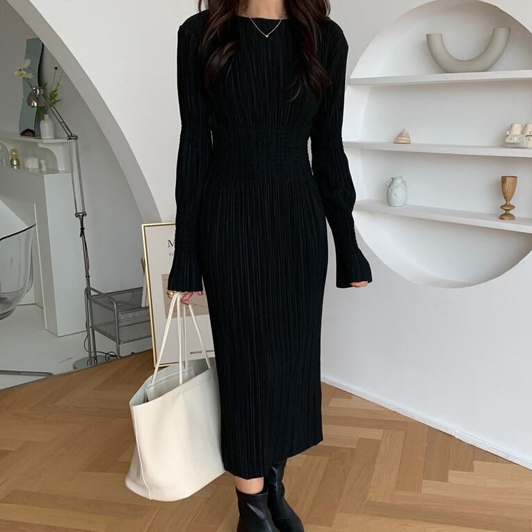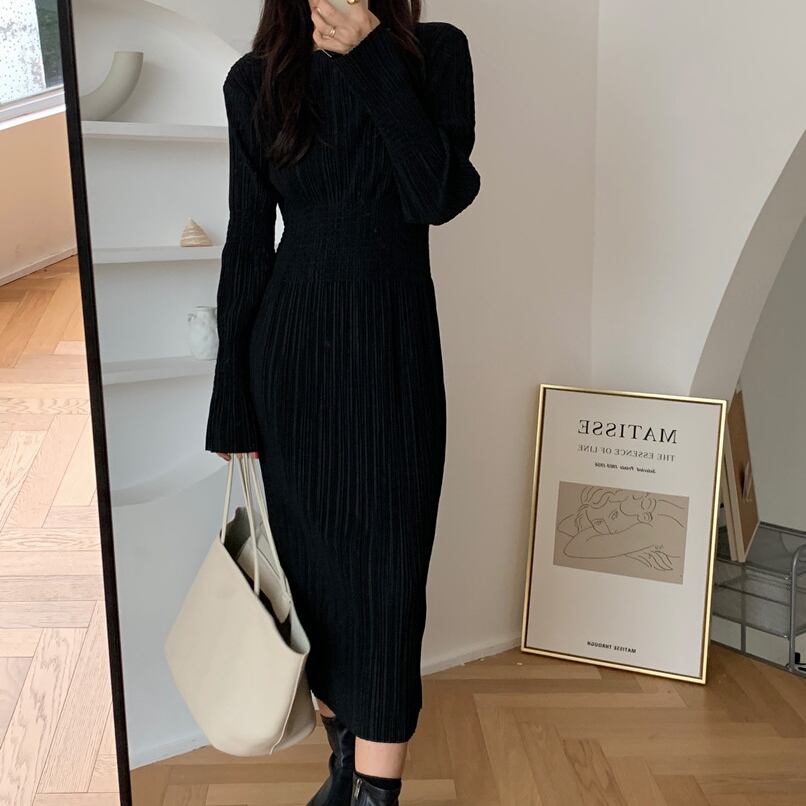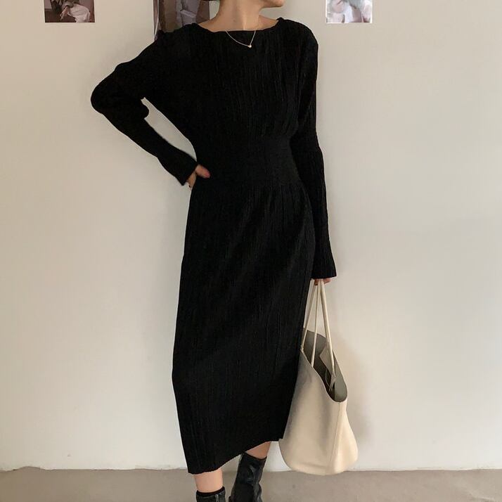 ワンピース ワンピドレス タイトワンピース ロング丈 長袖 ラウンドネック タイト クレープ 伸縮性 無地 大人可愛い きれいめ シンプル 大人 上品 おしゃれ フェミニン レトロ 大人女子 こなれ感 クール エレガント 存在感 フォーマル 抜け感 シック クラシカル 華やか 春 秋 冬 レディース OL 学生 デート お出かけ 女子会 お泊まり 休日 パーティー イベント 旅行 ホテル レストラン 着回し 普段使い 華奢見え スタイルアップ コーデ モテ 美脚