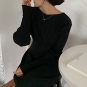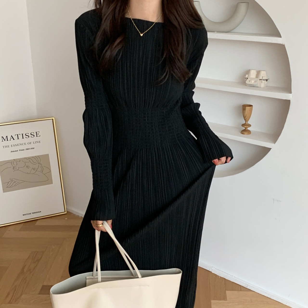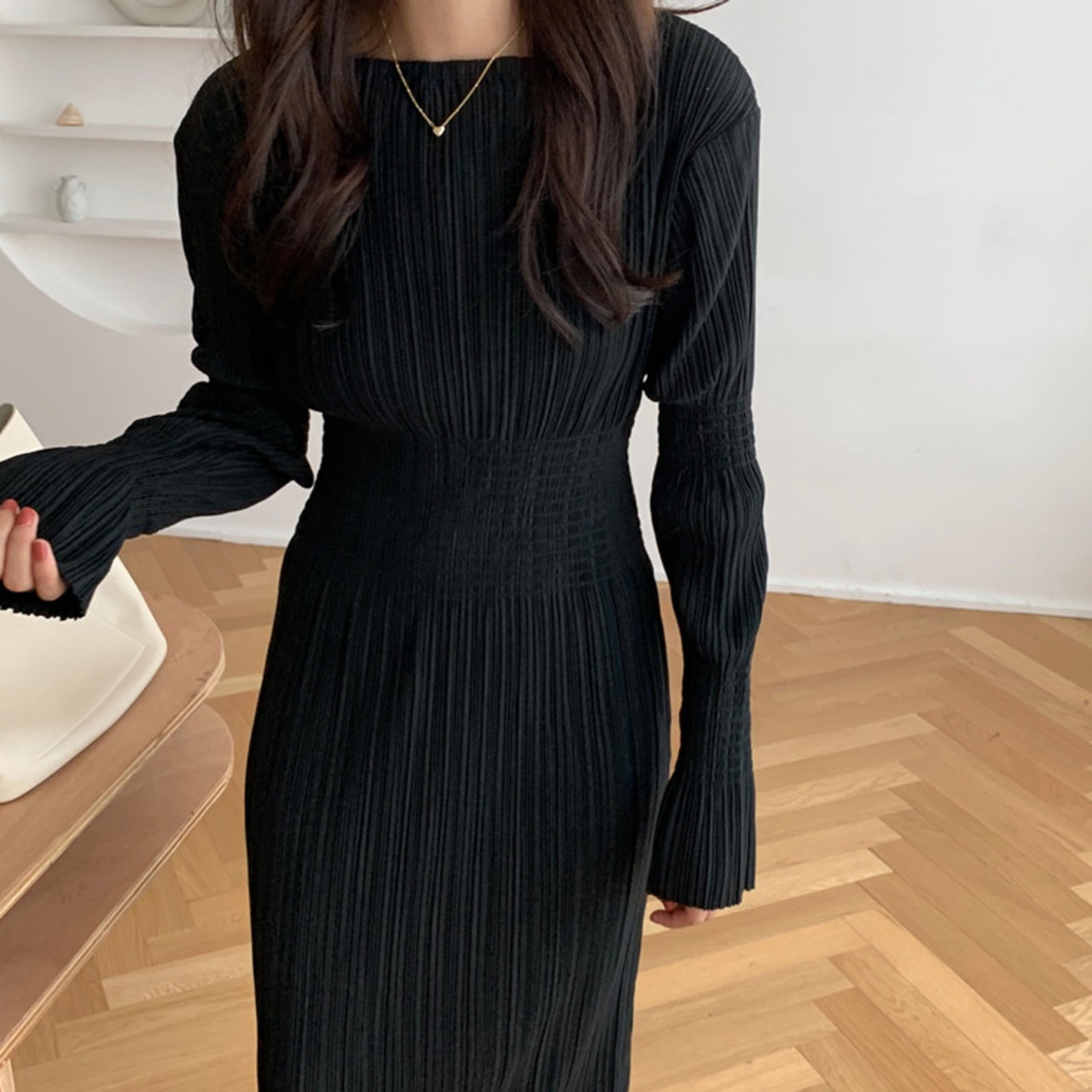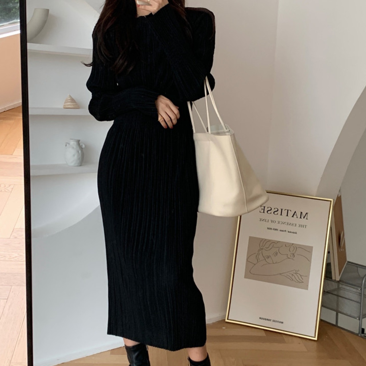ワンピース ワンピドレス タイトワンピース ロング丈 長袖 ラウンドネック タイト クレープ 伸縮性 無地 大人可愛い きれいめ シンプル 大人 上品 おしゃれ フェミニン レトロ 大人女子 こなれ感 クール エレガント 存在感 フォーマル 抜け感 シック クラシカル 華やか 春 秋 冬 レディース OL 学生 デート お出かけ 女子会 お泊まり 休日 パーティー イベント 旅行 ホテル レストラン 着回し 普段使い 華奢見え スタイルアップ コーデ モテ 美脚