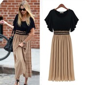 切り替えデザインがお洒落なロング丈ワンピースです。
