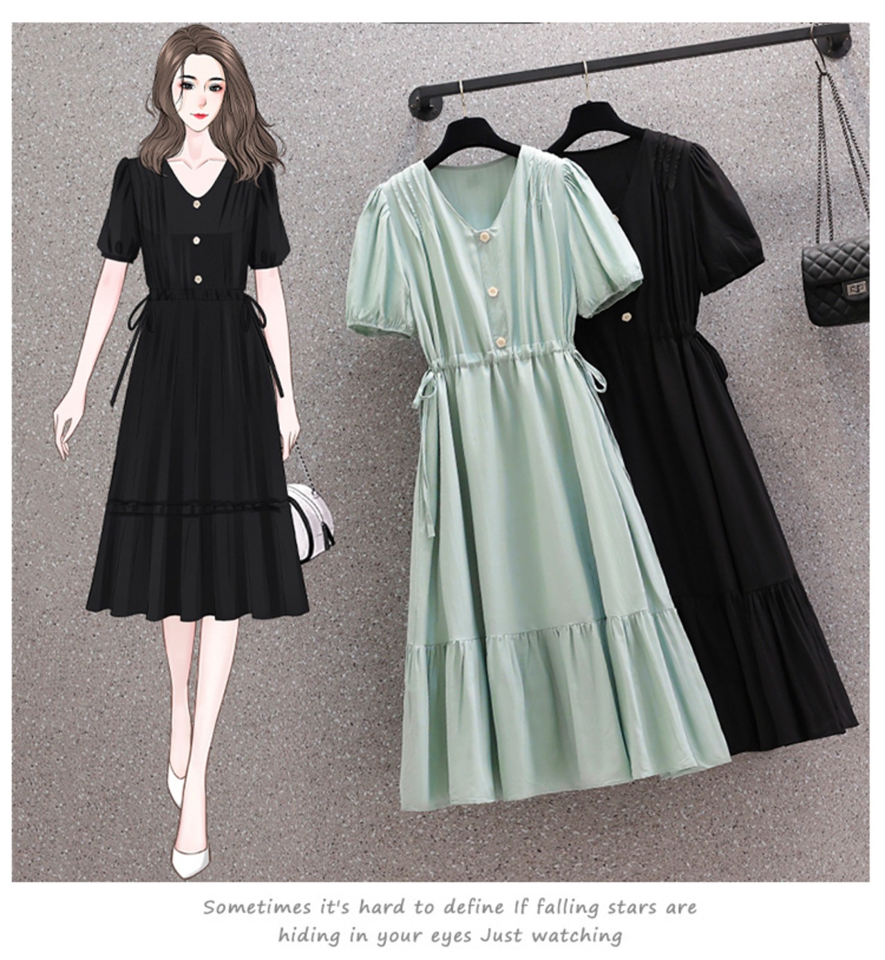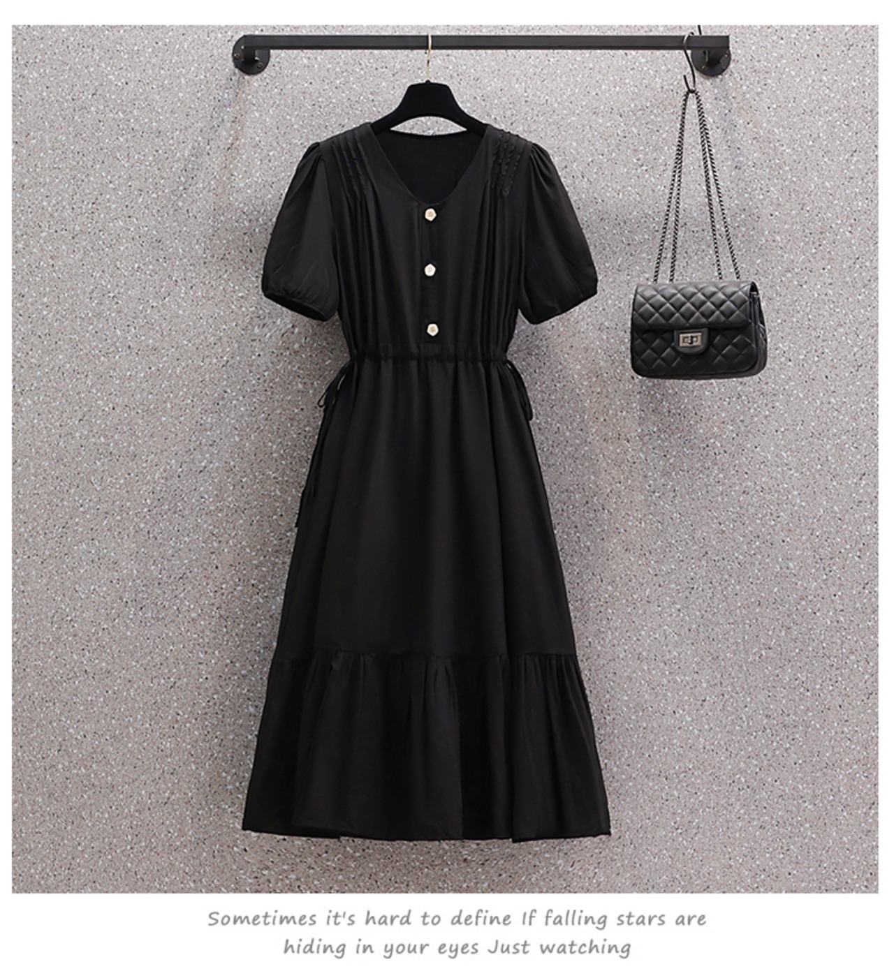 膝まで覆う丈が上品で大人っぽい印象を演出する魅力的な一着です。