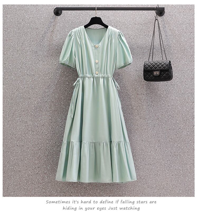 ワンピース フレアワンピース 膝丈 ひざ丈 膝下 ミモレ ミモレ丈 袖あり 半袖 パフスリーブ Vネック フレア Aライン 切り替えデザイン リボン ウエストマーク ウエストリボン ハイウエスト ボタン かわいい 大人可愛い きれいめ シンプル カジュアル 大人 上品 おしゃれ お洒落 大人女子 キュート ガーリー エレガント 抜け感 フェミニン ロマンチック 無地 春 夏 デート お出かけ 着回し 普段使い モテ 体系カバー 美脚 脚長 プレゼント ギフト 定番 大きいサイズ 大きめ ビッグサイズ