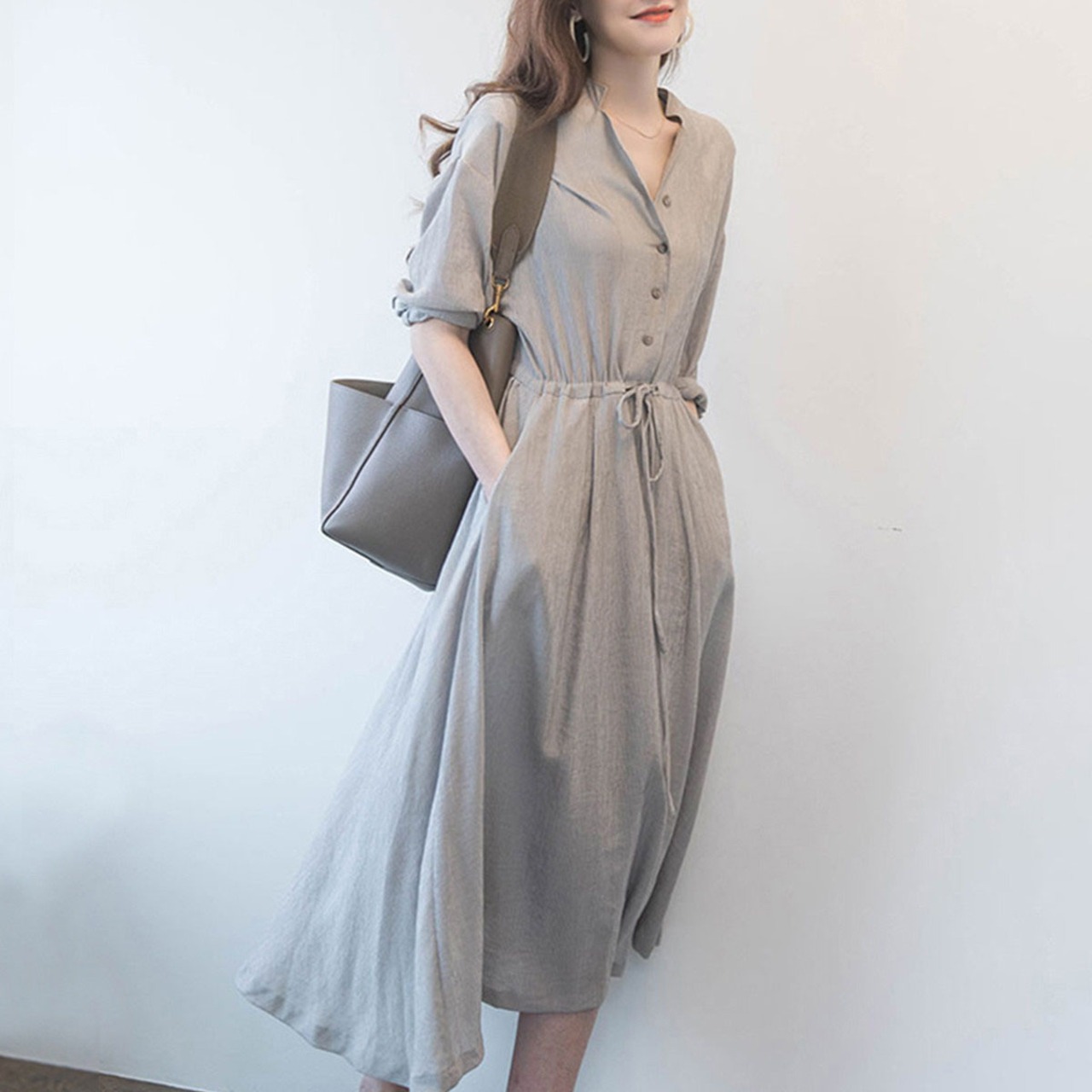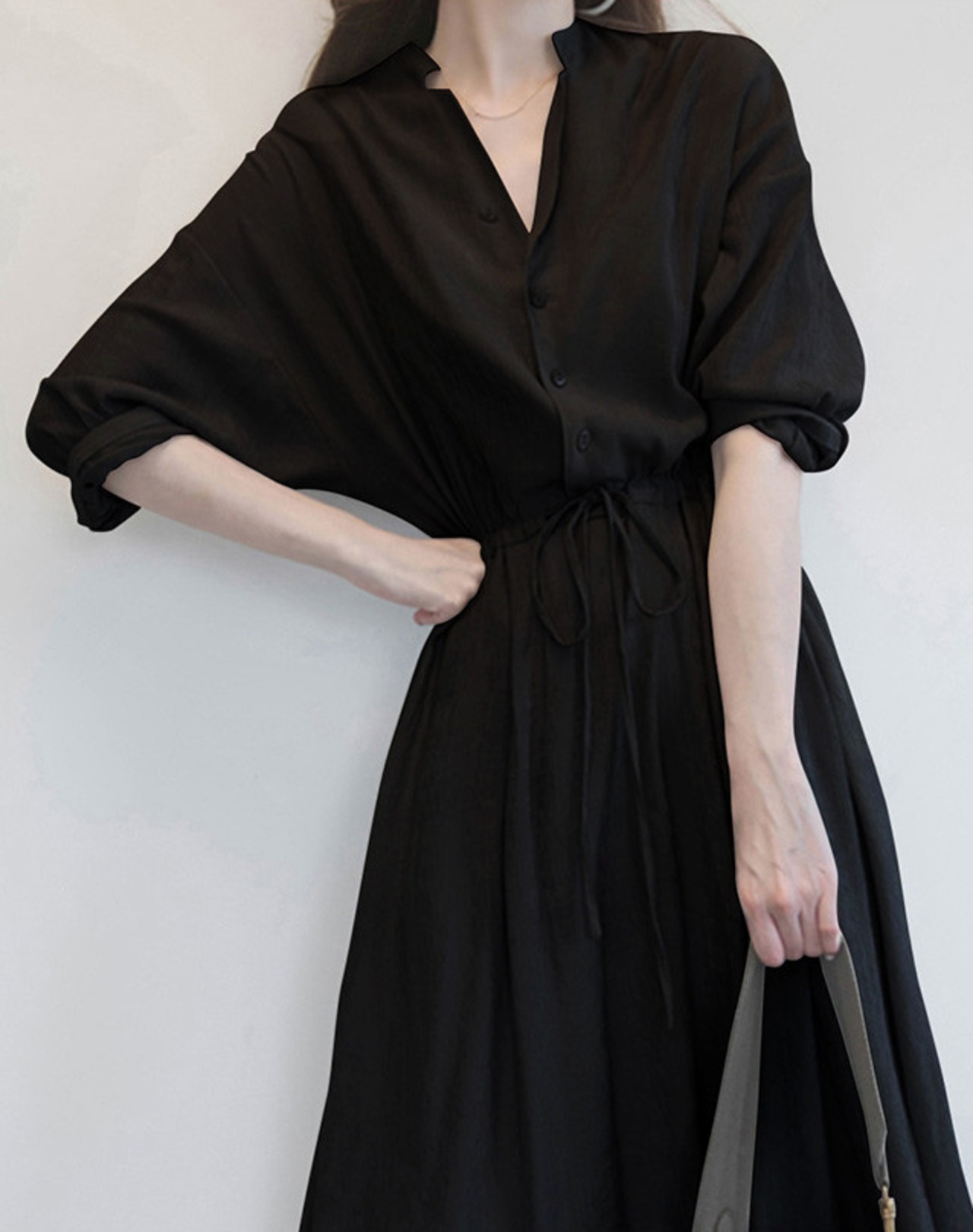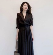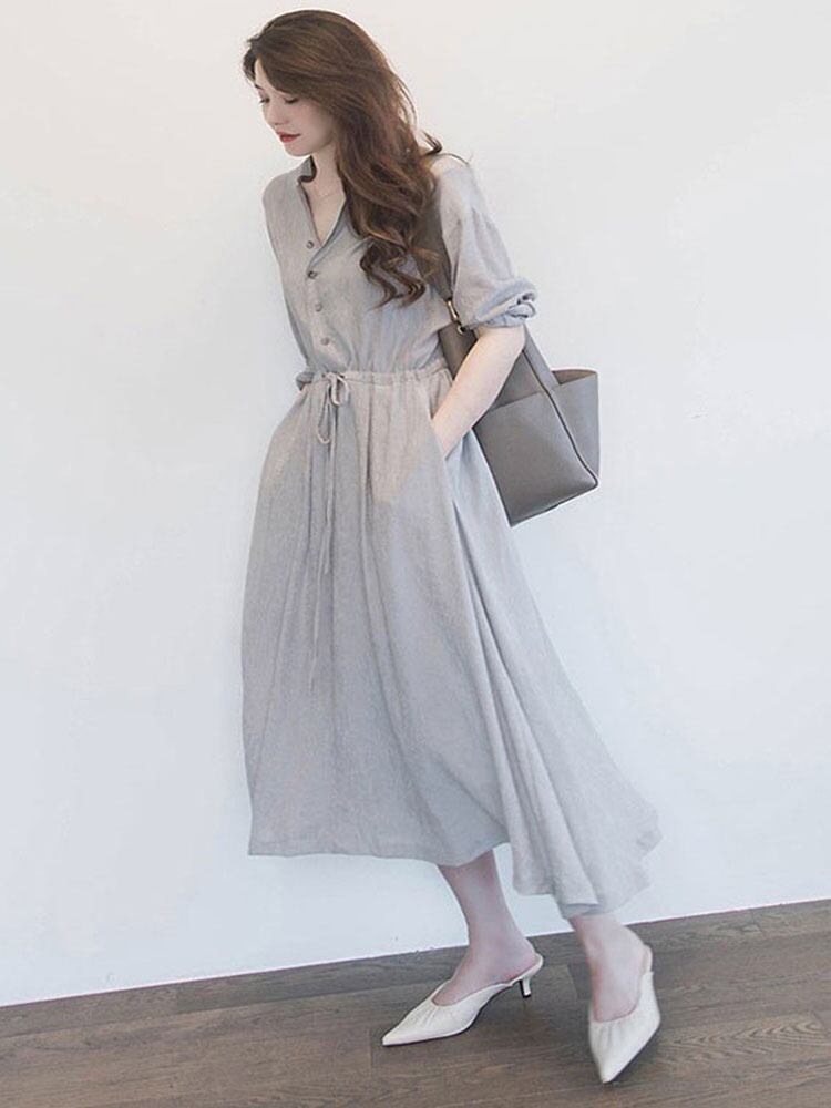ワンピース シャツワンピース フレアワンピース ミモレ ミモレ丈 袖あり 長袖 Vネック フレア セミフレア リボン ウエストマーク ウエストリボン 大人可愛い きれいめ シンプル カジュアル 大人 上品 おしゃれ お洒落 大人女子 こなれ感 ラフ エレガント とろみ感 抜け感 無地 春 夏 秋 2022 2023 10代 20代 30代 40代 50代 60代 レディース 女性用 通勤 学生 通学 デート お出かけ 休日 普段使い 体系カバー M L XL 2XL 3XL 黒 ブラック 灰色 グレー