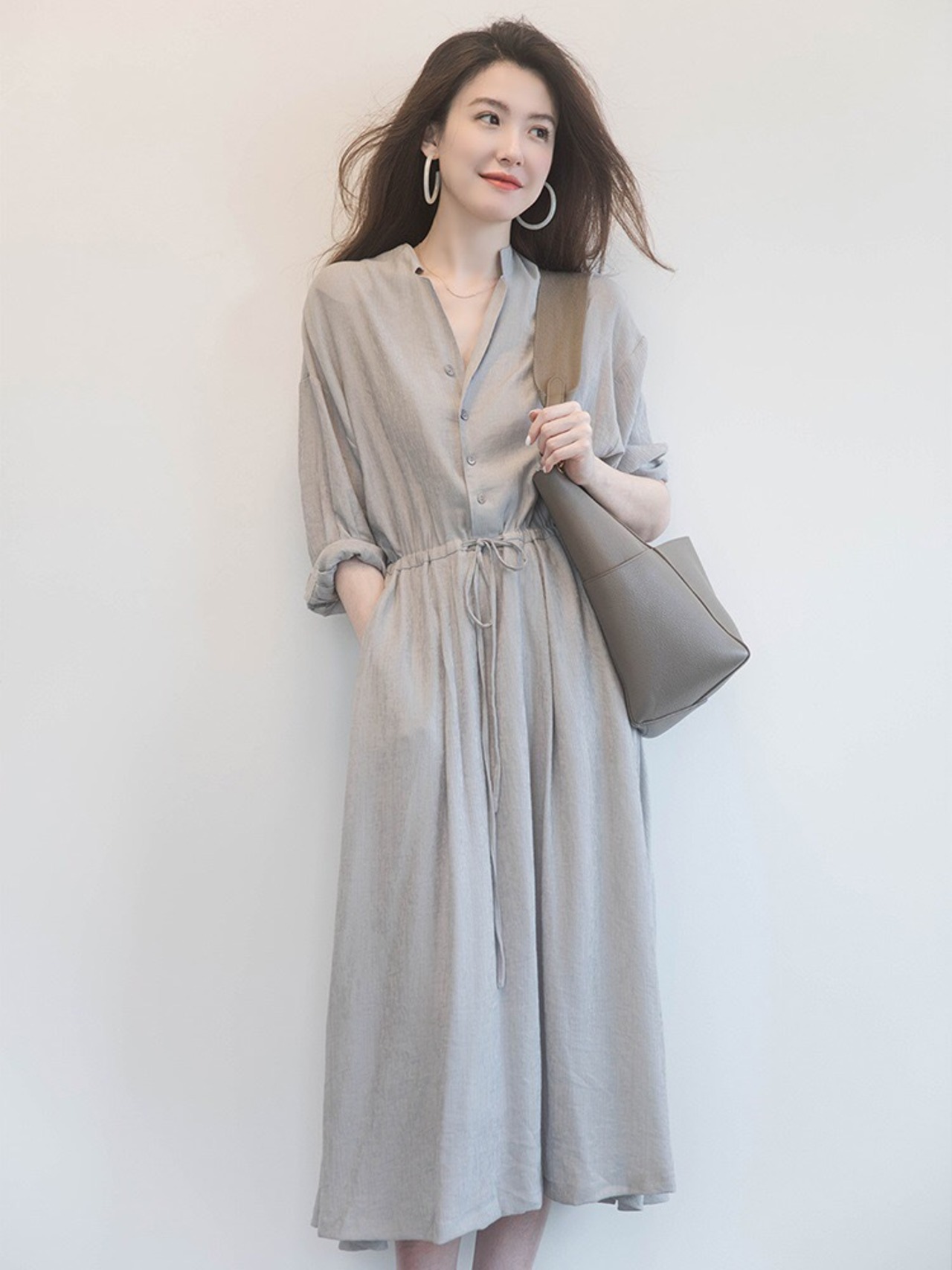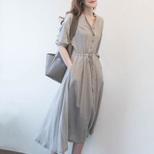 サラッとした生地のシャツワンピースで、着るだけで柔らかい印象に。