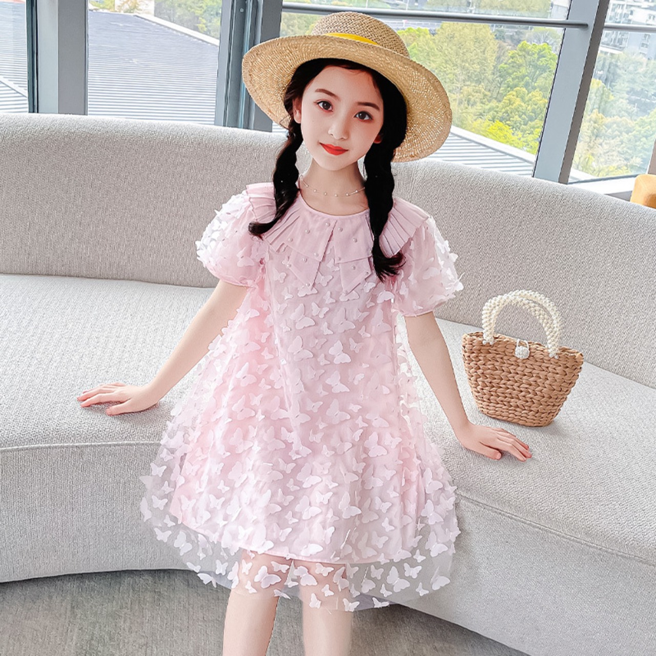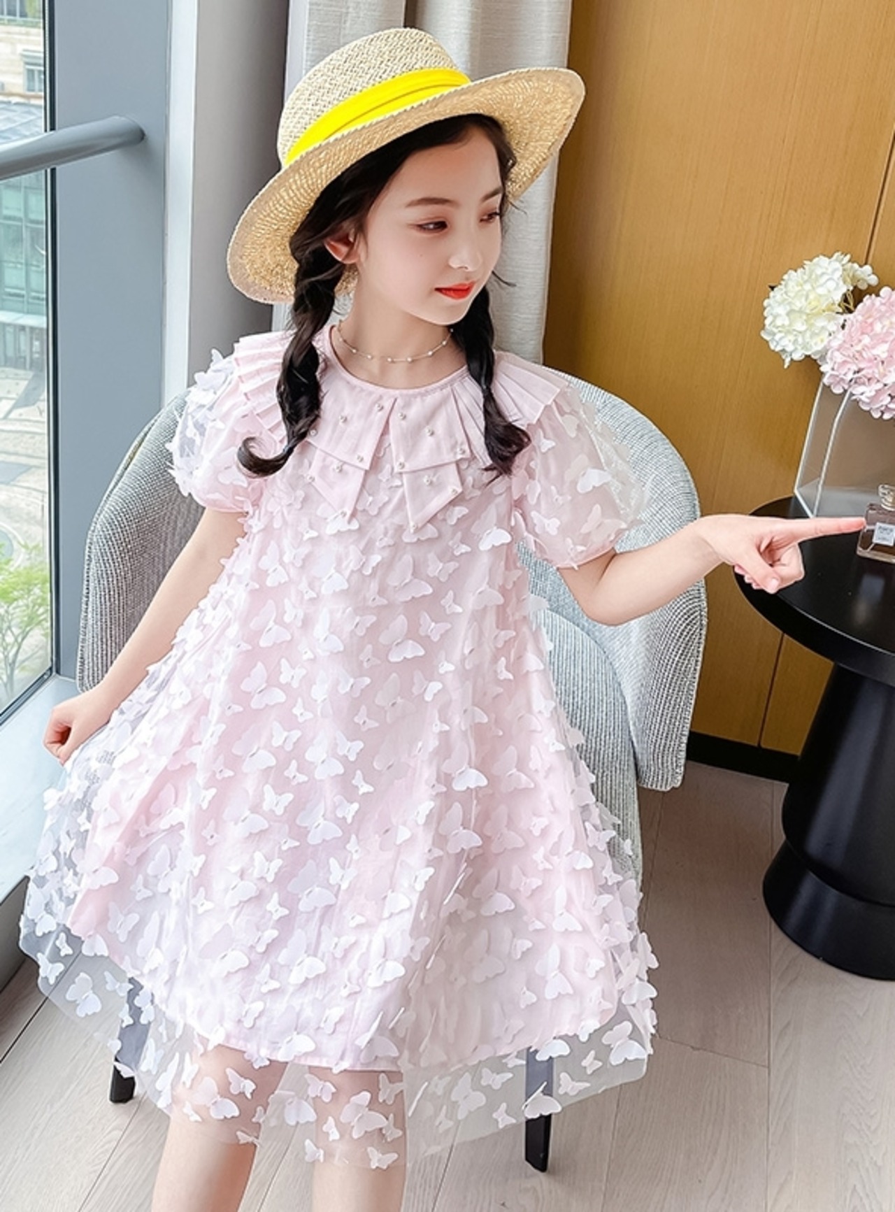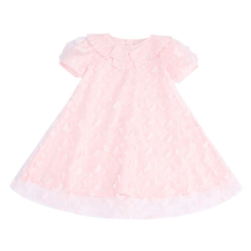 【子ども】女の子 蝶柄 ワンピース ピスタチオグリーン シャーベットピンク 涼しい お出かけ用 ワンピース 110 120 130 140cm
