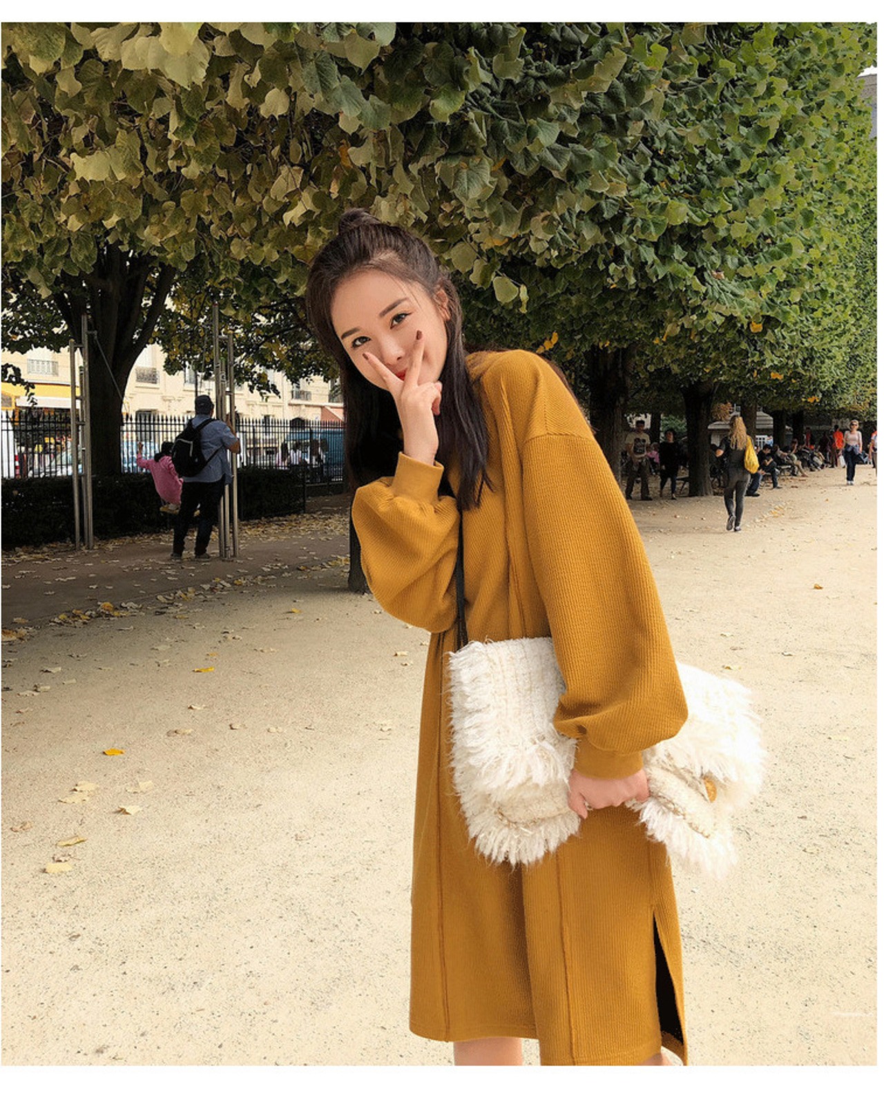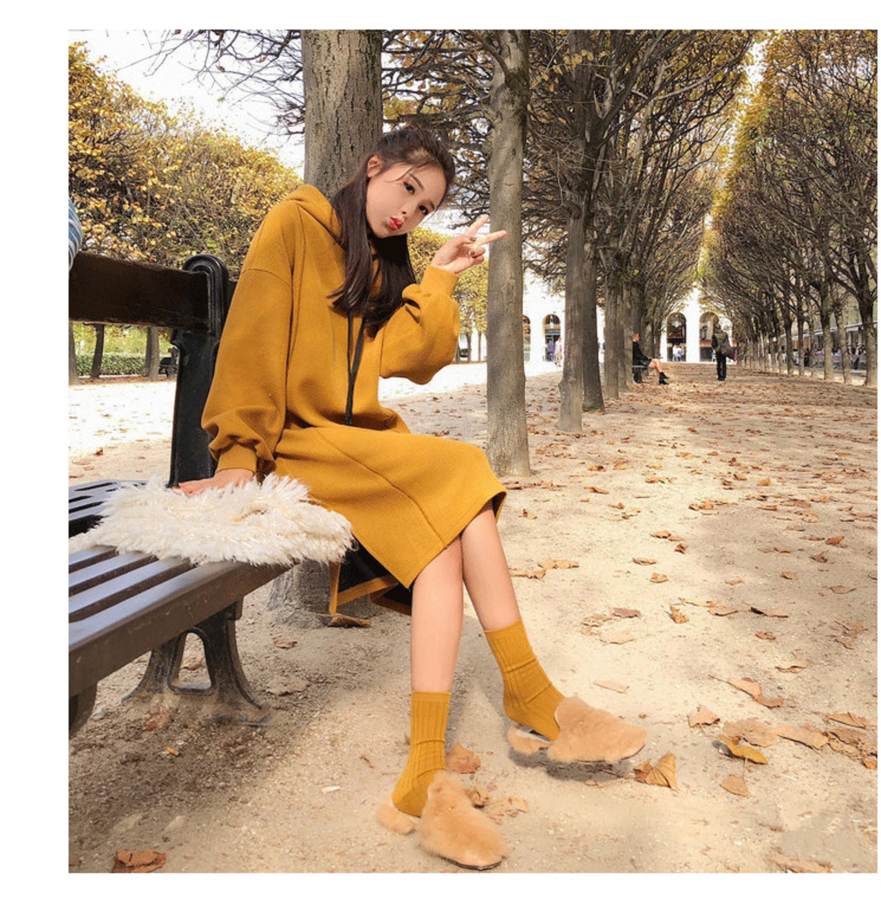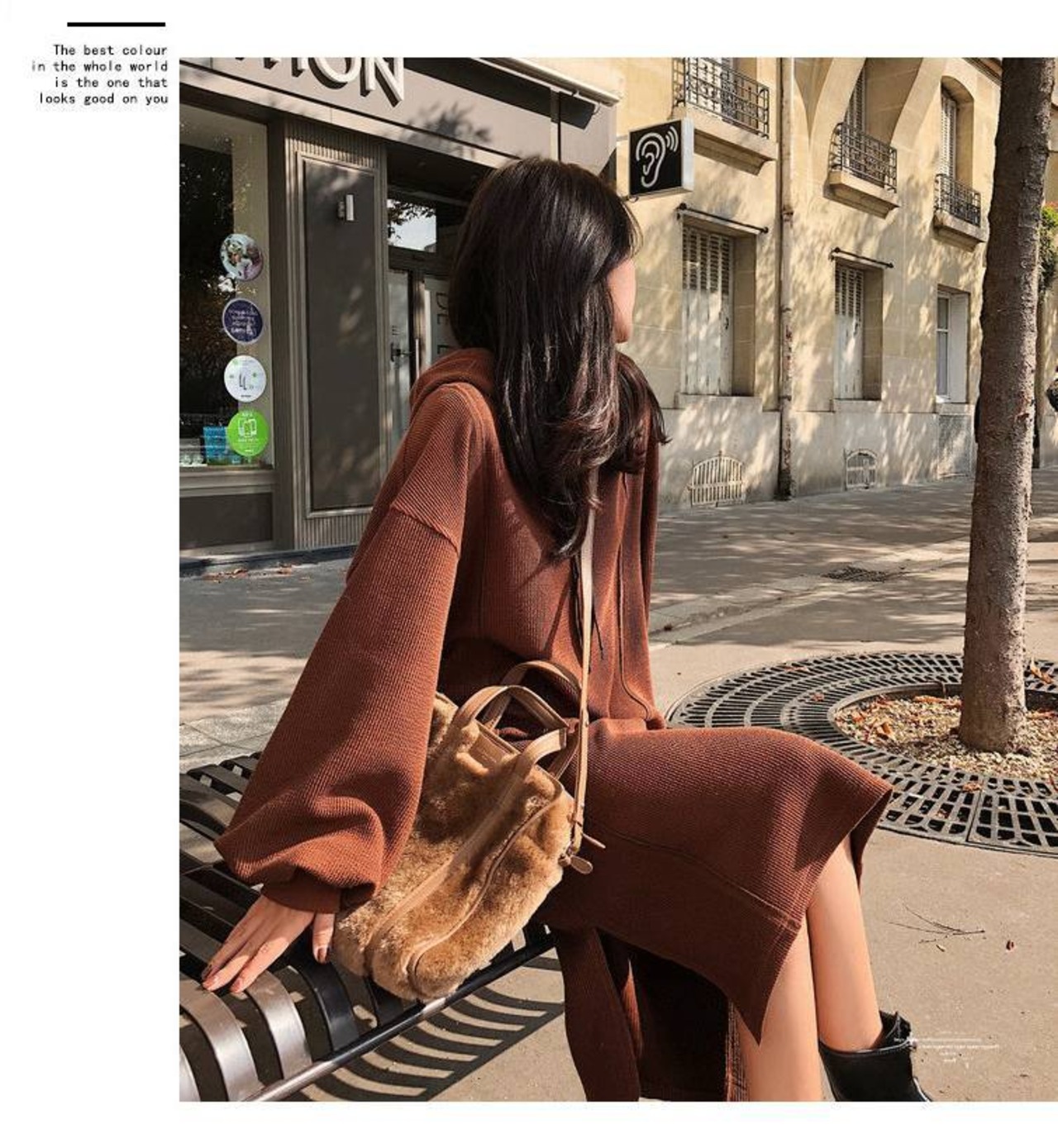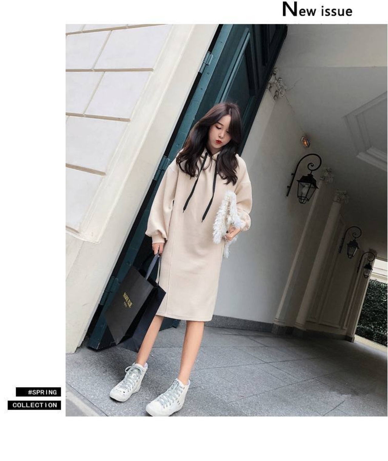 カジュアルなミモレ丈のフーディ―ワンピースです。