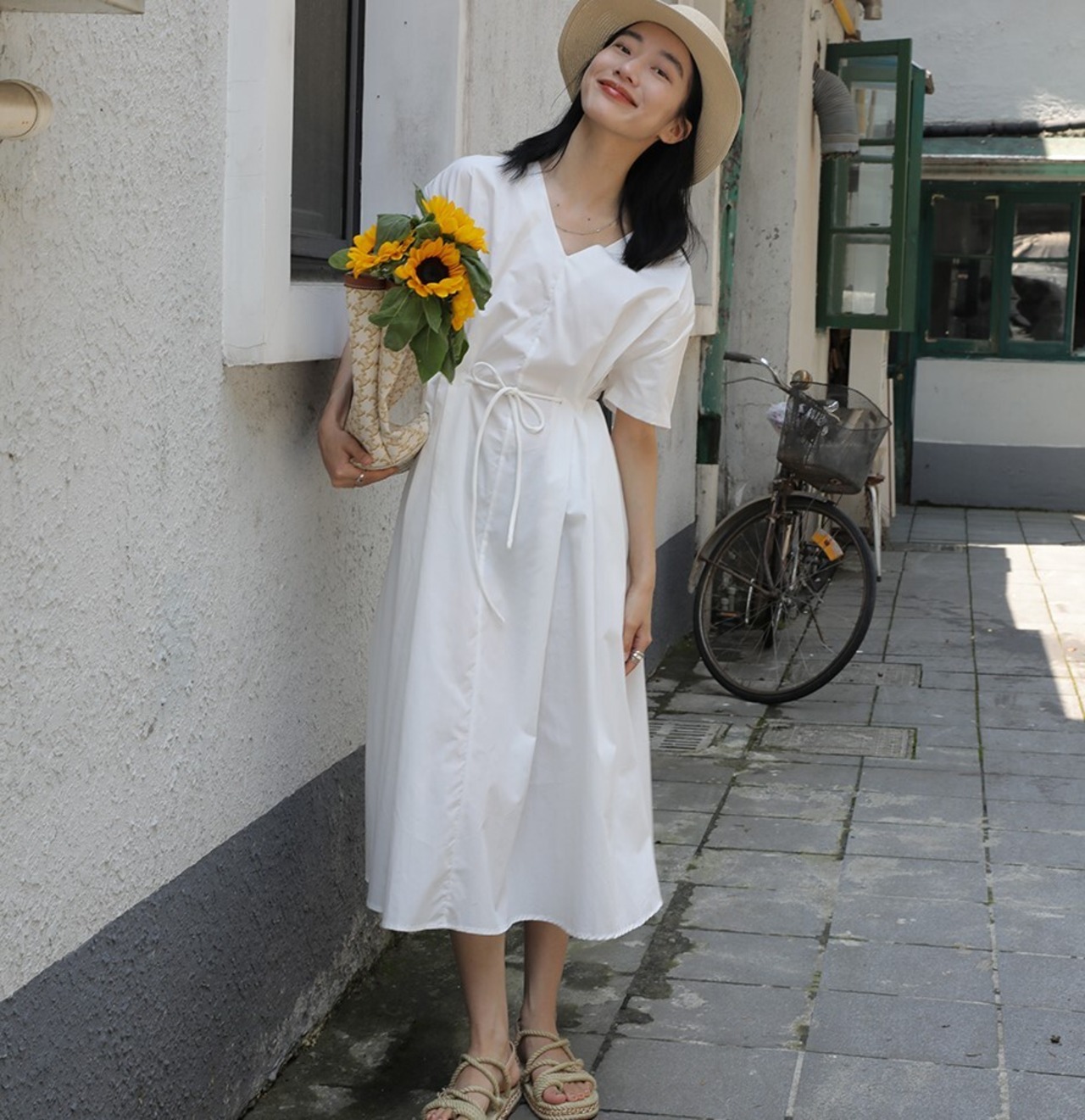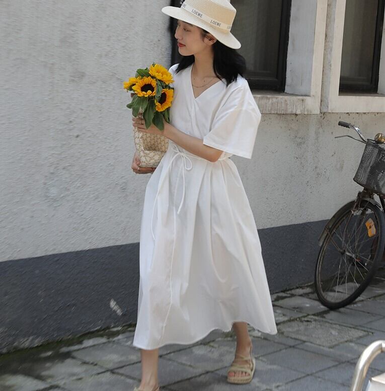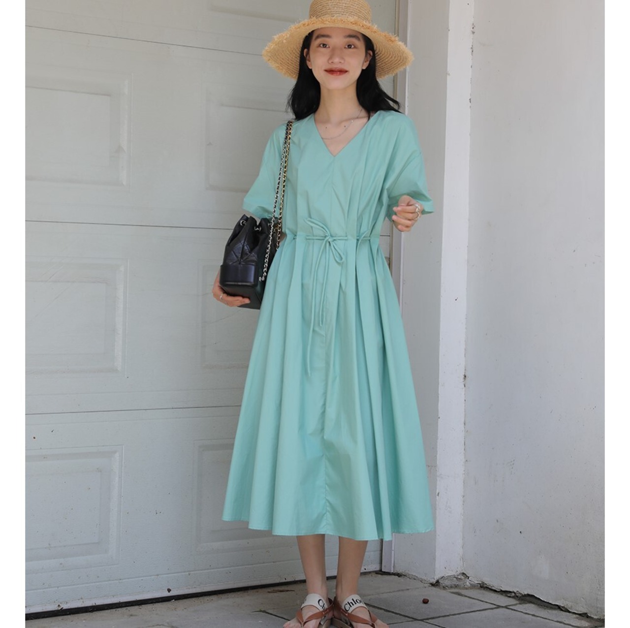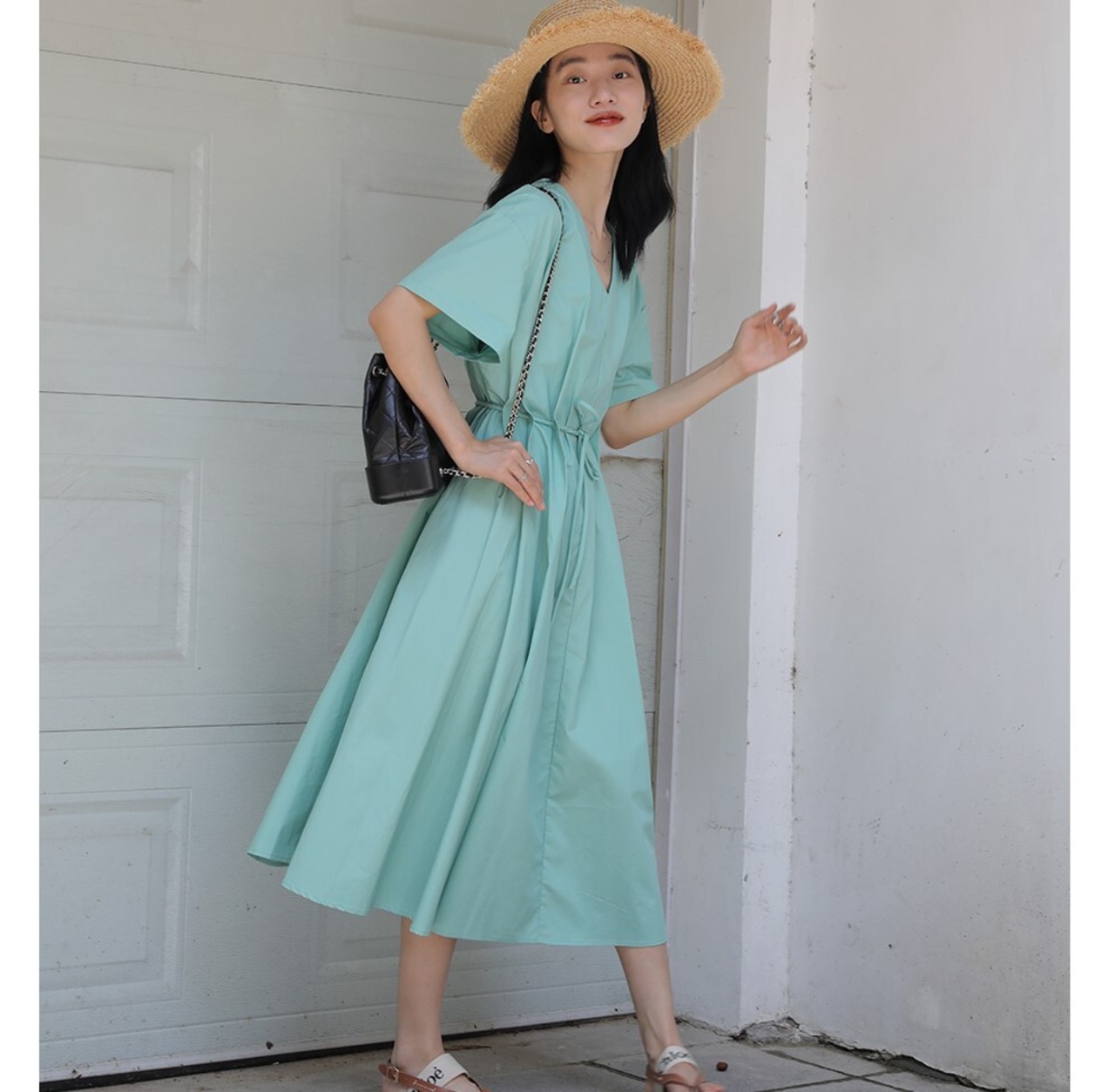 ワンピース フレアワンピース ミモレ ミモレ丈 7分丈 ミディアム丈 半袖 Vネック 襟なし フレア セミフレア Aライン ウエストマーク ウエストリボン かわいい 大人可愛い シンプル 大人 おしゃれ お洒落 大人可愛い 大人女子 こなれ感 キュート ガーリー 無地 春 夏 10代 20代 30代 レディース 女性用 デート お出かけ 公園デビュー 女子会 お泊まり 休日 リゾート 旅行 高原 ホテル ガーデン レストラン 着回し S M L 白 ホワイト 黒 ブラック 緑 グリーン