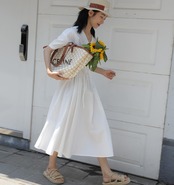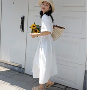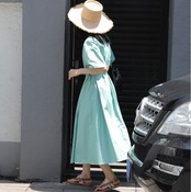 ウエストマークの紐とAラインがかわいい半そでワンピースです。