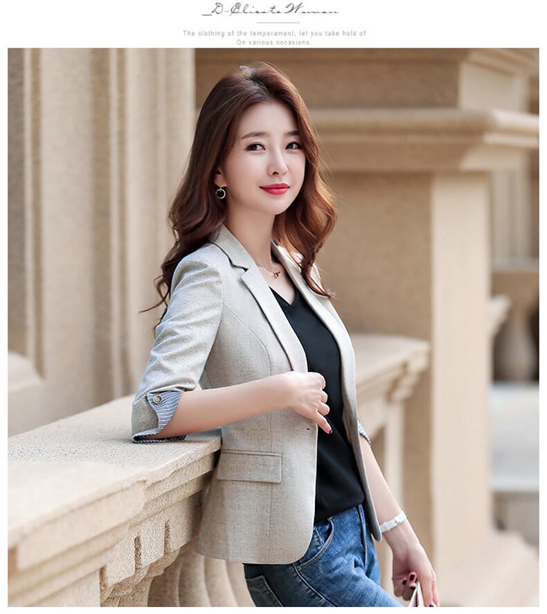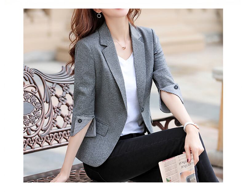 大人っぽく、きれいめな印象の7分袖テーラードジャケット。