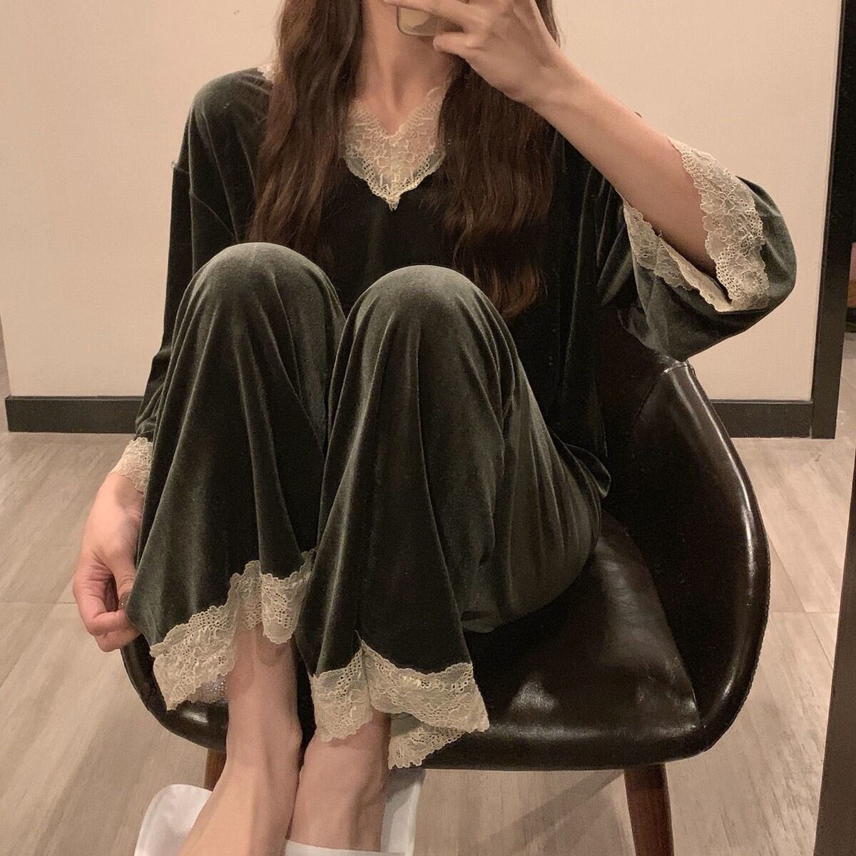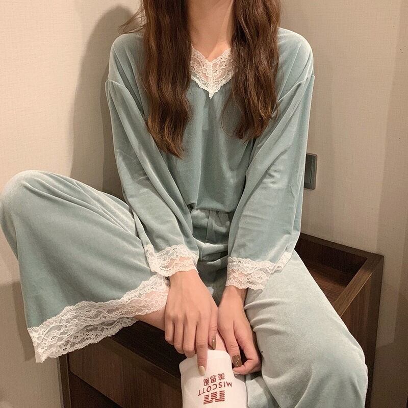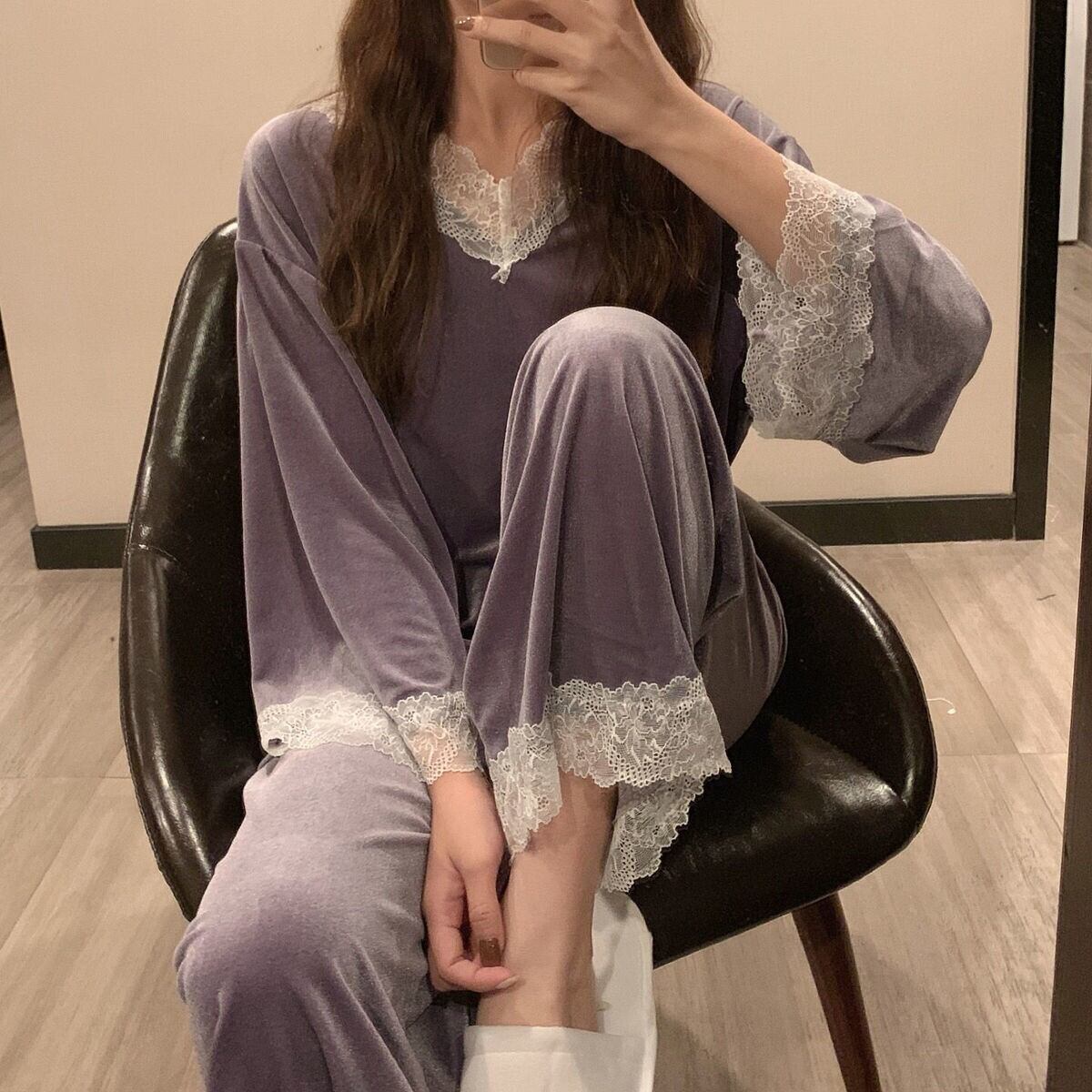 トップス ボトムス パンツ ルームウェア パジャマ プルオーバー ワイドパンツ 袖あり 長袖 ボリューム袖 Vネック ワイド レース ウエストゴム 上下セット 2点セット ツーピース かわいい 大人可愛い きれいめ シンプル 大人 上品 おしゃれ お洒落 レトロ 大人女子 こなれ感 ラフ キュート ガーリー ルーズ エレガント とろみ感 抜け感 フェミニン クラシカル ロマンチック 無地 春 秋 レディース 女性用 デート 女子会 お泊まり 休日 普段使い お揃い 楽ちん モテ プレゼント ギフト