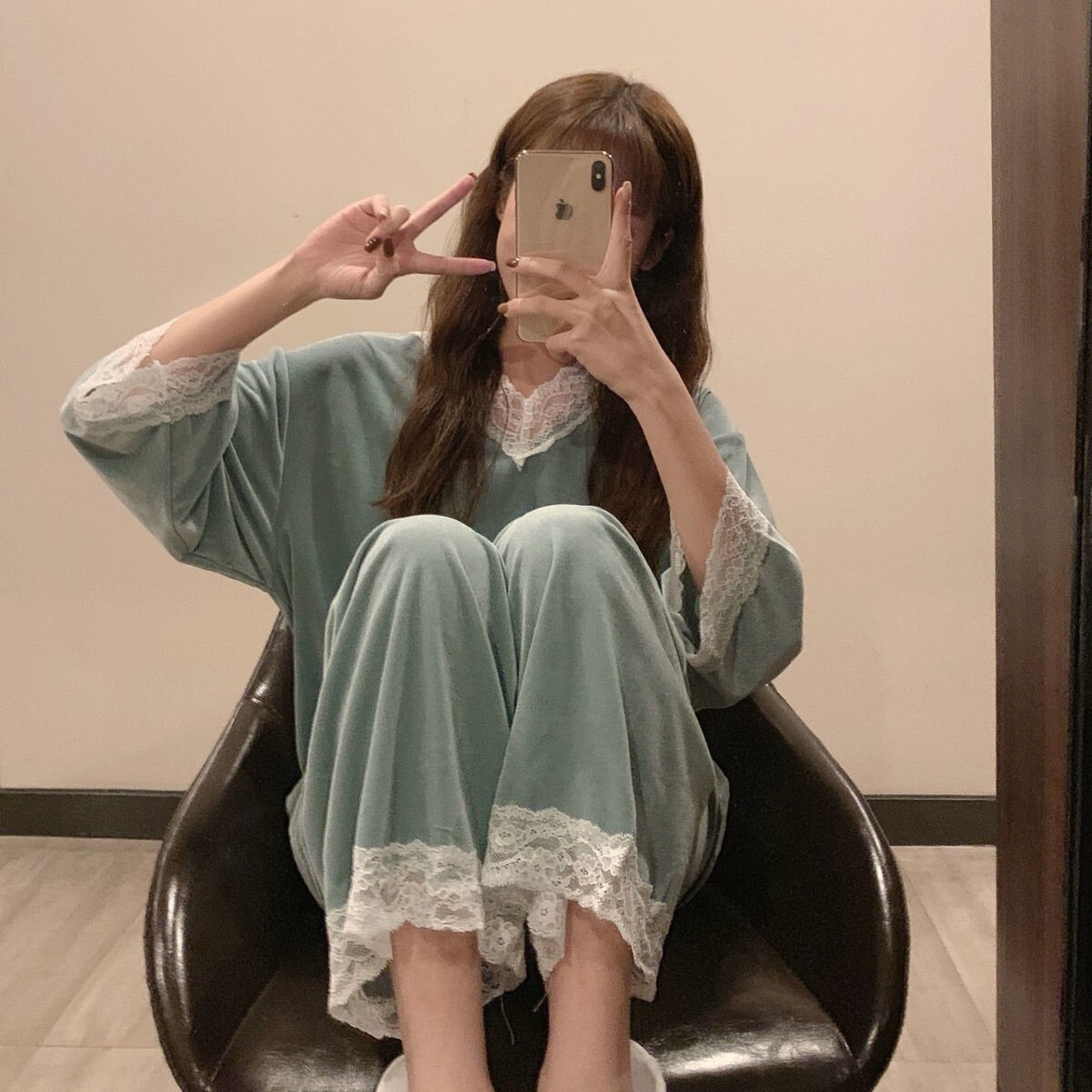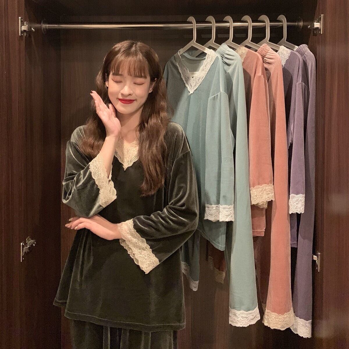 レースがあしらわれたロマンチックで大人可愛いルームウェアです。