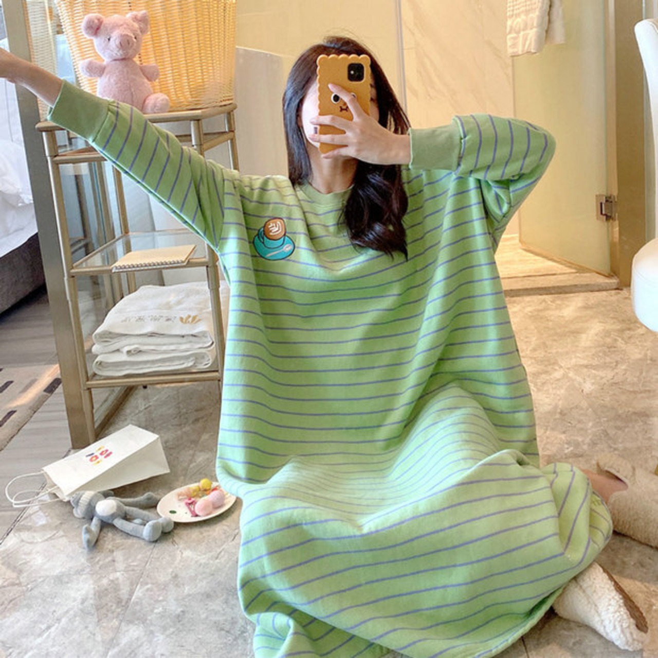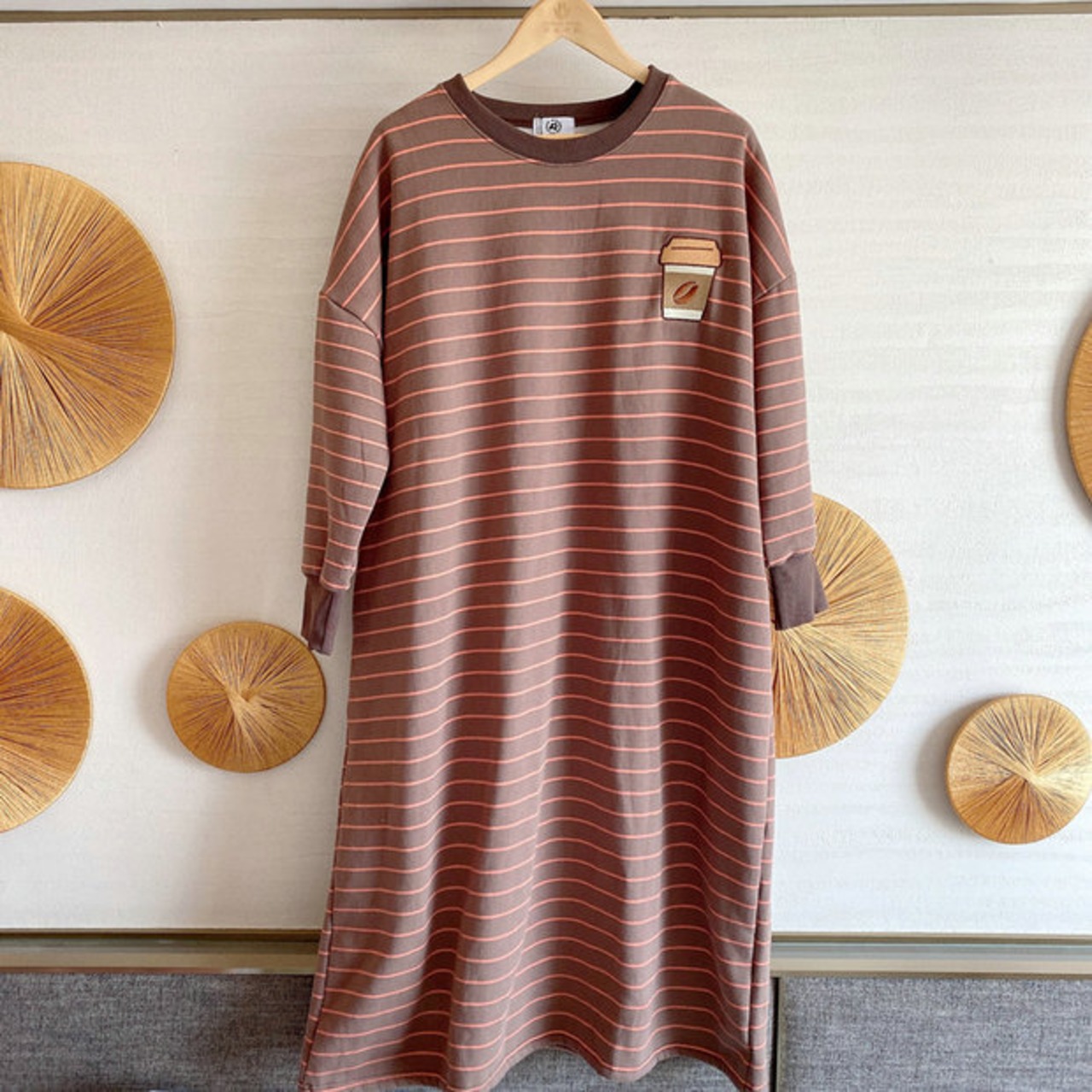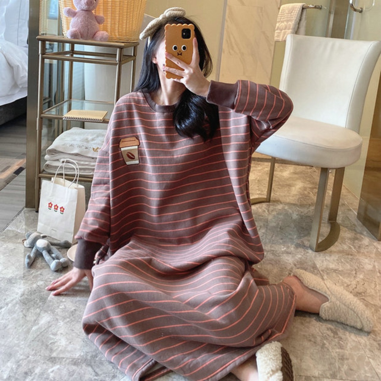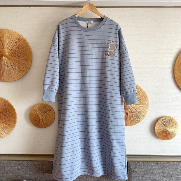ワンピース ルームウェア パジャマ プルオーバー トレーナー 袖あり 長袖 ドロップショルダー クルーネック ストレート ワイド Iライン 綿 厚手 裏起毛 コットン かわいい 大人可愛い シンプル カジュアル 大人 上品 おしゃれ お洒落 大人女子 こなれ感 ラフ ラブリー キュート ガーリー ルーズ 個性的 抜け感 フェミニン 柄 ボーダー ストライプ ワンポイント スマイリー 秋 冬 ママ マタニティ お泊まり 休日 楽ちん 暖かい 体系カバー 大きいサイズ 大きめ ビッグサイズ ゆったり ゆる