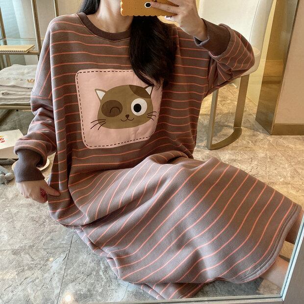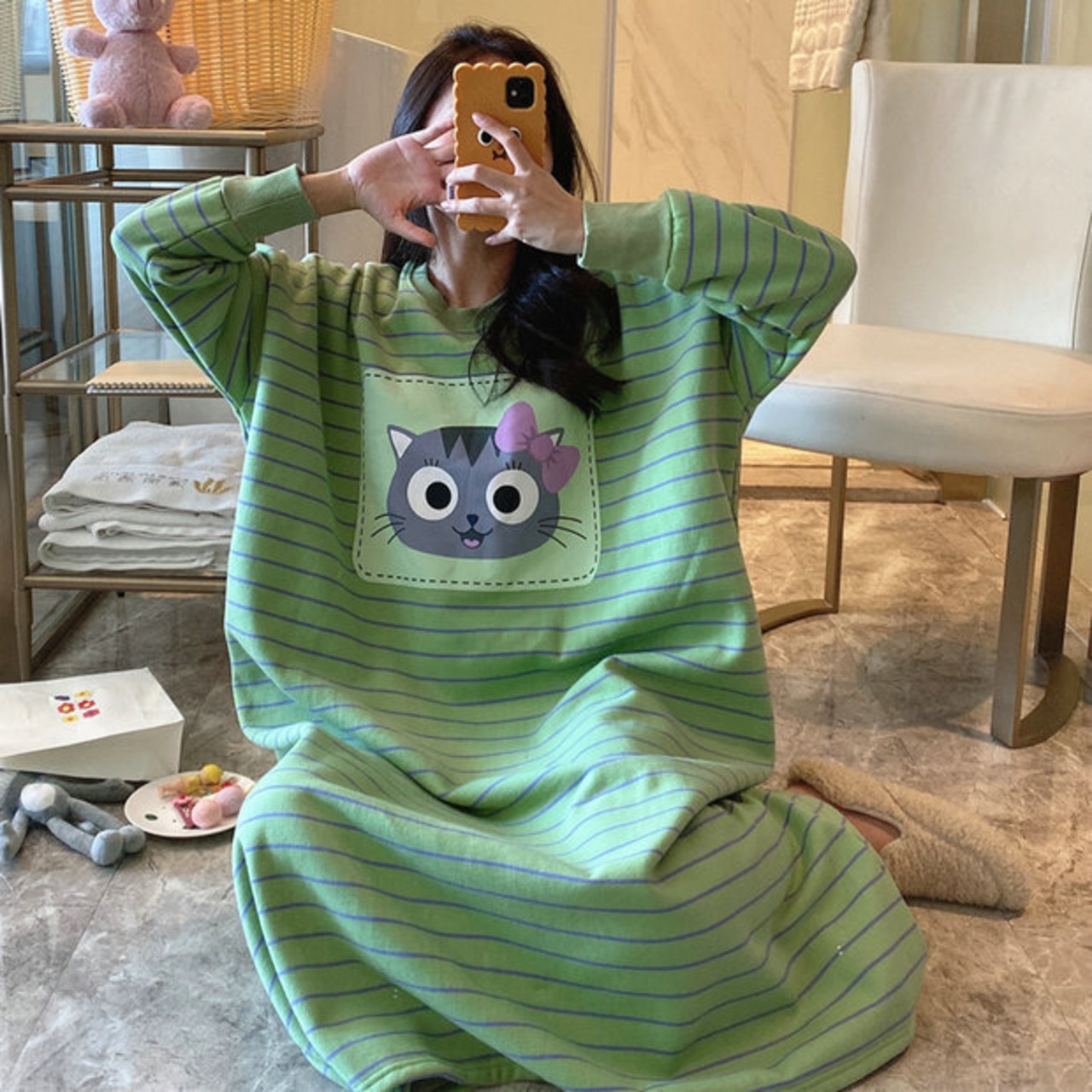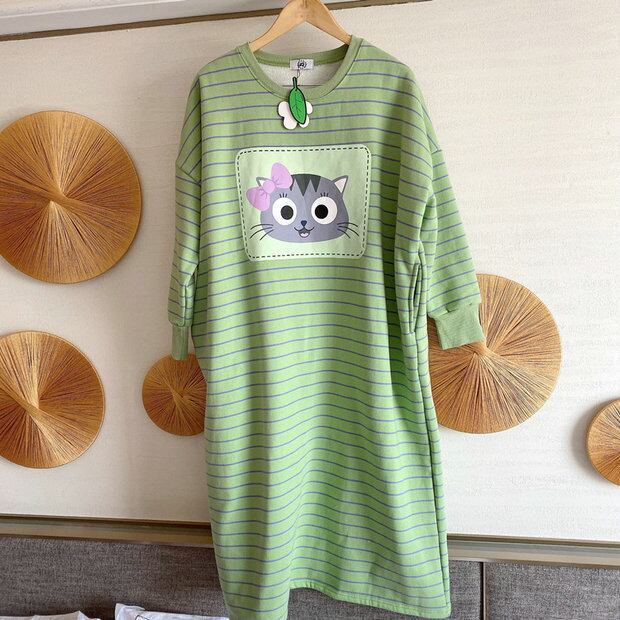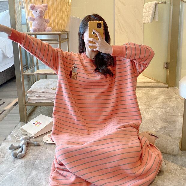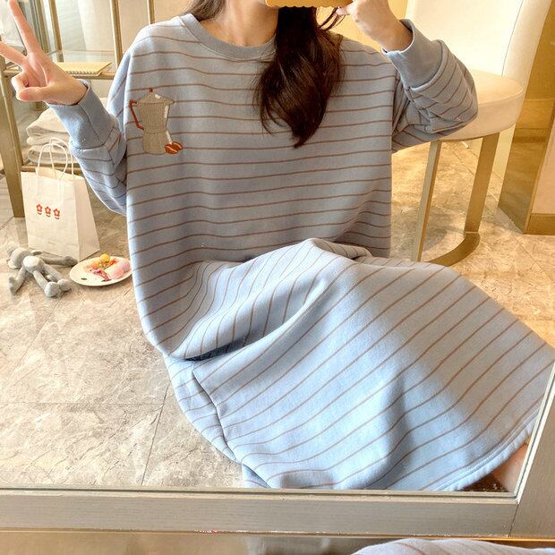 ワンピース ルームウェア パジャマ プルオーバー トレーナー 袖あり 長袖 ドロップショルダー クルーネック ストレート ワイド Iライン 綿 厚手 裏起毛 コットン かわいい 大人可愛い シンプル カジュアル 大人 上品 おしゃれ お洒落 大人女子 こなれ感 ラフ ラブリー キュート ガーリー ルーズ 個性的 抜け感 フェミニン 柄 ボーダー ストライプ ワンポイント スマイリー 秋 冬 ママ マタニティ お泊まり 休日 楽ちん 暖かい 体系カバー 大きいサイズ 大きめ ビッグサイズ ゆったり ゆる