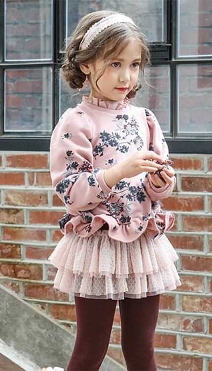 【子ども】女の子 かわいい 花柄 110 120 130 140cm キッズ ガーリー キュート ローズピンク クリームバニラ