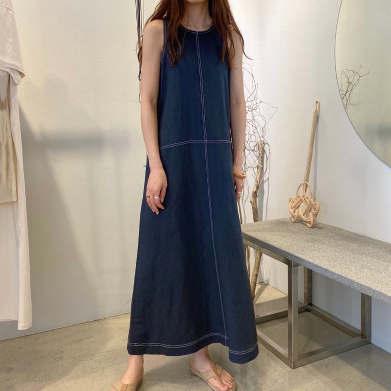 大人カジュアルなロング丈ワンピースです。