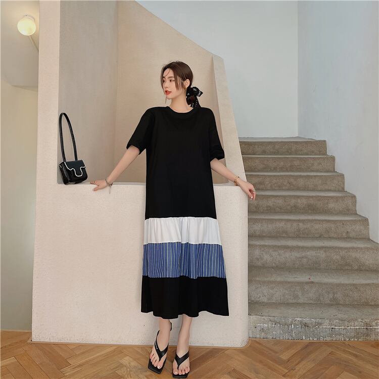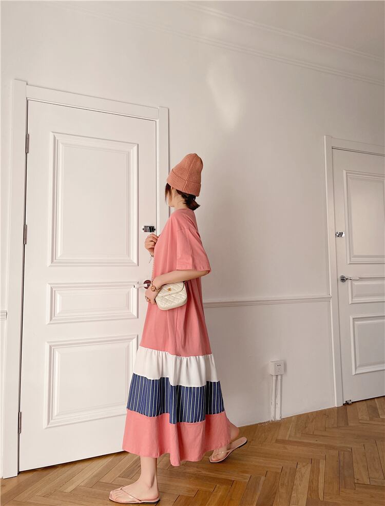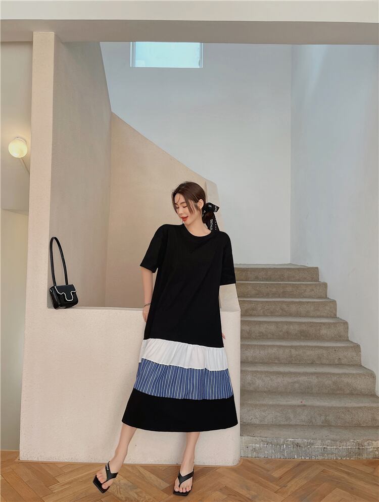 ワンピース フレアワンピース ティアードワンピース 膝下 ミモレ ミモレ丈 袖あり 半袖 ラウンドネック フレア セミフレア Aライン 切り替えデザイン 大人可愛い きれいめ シンプル カジュアル 大人 おしゃれ お洒落 大人女子 とろみ感 抜け感 きれいめ エレガント ストライプ 無地 春 夏 10代 20代 30代 40代 50代 60代 リゾート 旅行 海 OL 学生 通学 デート お出かけ 休日 体系カバー 普段使い モテ 定番 フリーサイズ L 黒 ブラック ピンク ホワイト ブラック