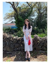 清楚でロマンチックな印象のミモレ丈ワンピースです。