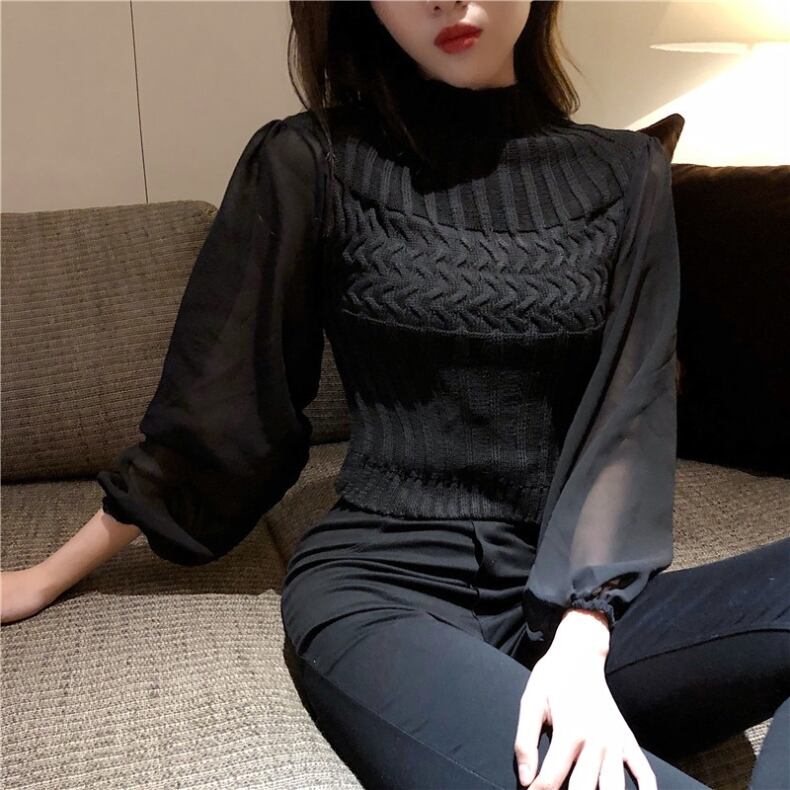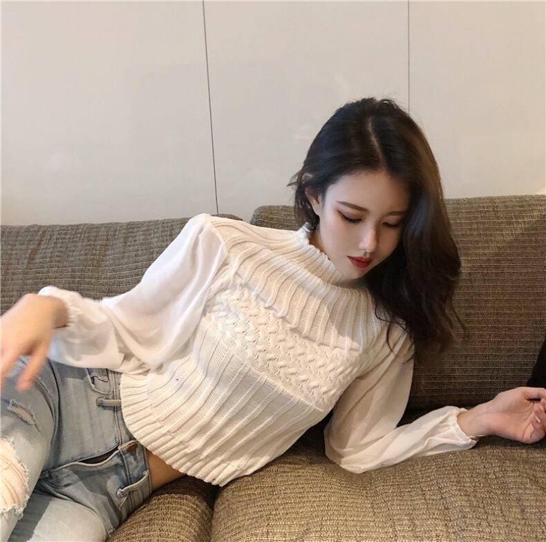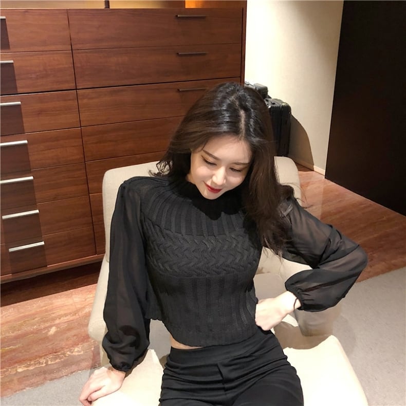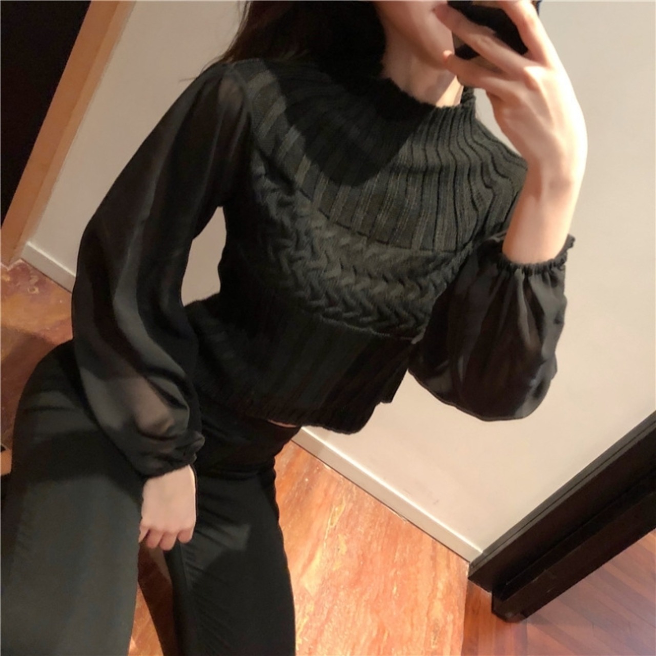 トップス ニットソー セーター ショート ショート丈 袖あり 長袖 パフスリーブ フレンチスリーブ ハイネック タートルネック スリム タイト 細身 シフォン 切り替えデザイン リブ リブニット 透け感 シースルー かわいい 大人可愛い 大人 おしゃれ お洒落 レトロ 大人可愛い 大人女子 こなれ感 キュート 抜け感 秋 冬 10代 20代 レディース 女性用 デート お出かけ 女子会 お泊まり 休日 イベント リゾート 旅行 高原 ホテル ガーデン レストラン 着回し コーデ モテ S M L