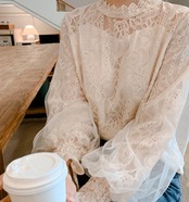 トップス ブラウス カットソー 袖あり 長袖 ランタンスリーブ ハイネック 襟なし レース シフォン 切り替えデザイン 透け感 シースルー かわいい 大人可愛い 大人 おしゃれ お洒落 大人可愛い 大人女子 こなれ感 ラブリー キュート ガーリー 抜け感 春 秋 10代 20代 レディース 女性用 OL 通勤 デート お出かけ 女子会 お泊まり 休日 パーティー イベント リゾート 旅行 高原 ホテル ガーデン レストラン 着回し モテ S M L XL 2XL 3XL 白 ホワイト アプリコット