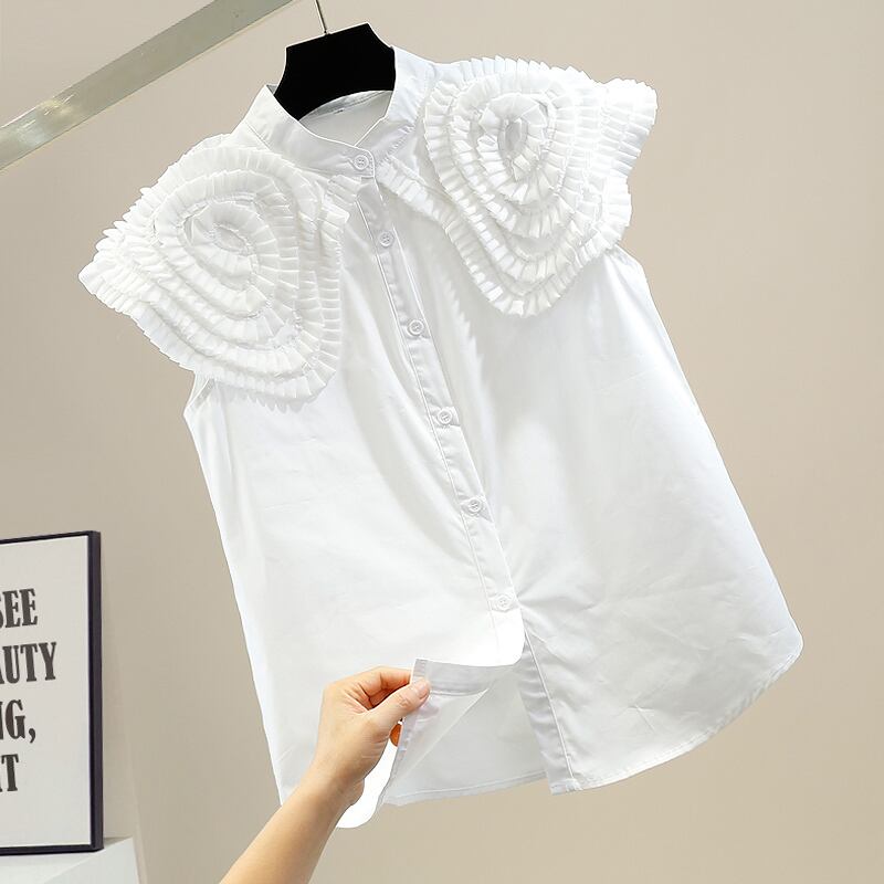 トップス ブラウス ノースリーブ 襟付き ストレート 前開き 大人可愛い きれいめ 大人 上品 おしゃれ お洒落 大人女子 こなれ感 ラブリー キュート ガーリー 個性的 エレガント 主役級 存在感 春 夏 秋 冬 2022 2023 10代 20代 30代 40代 50代 60代 レディース 女性用 お出かけ 休日 パーティー ホテル ガーデン レストラン S M L 白 ホワイト 黒 ブラック 青 ブルー