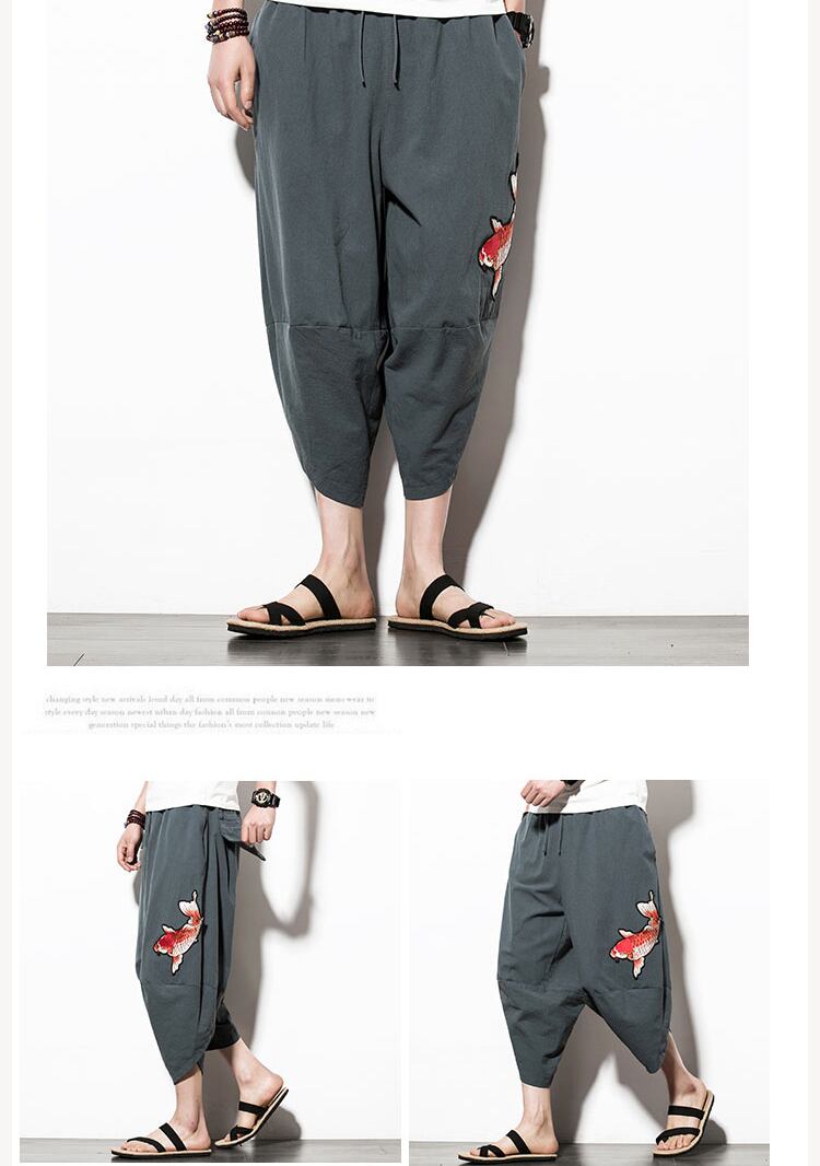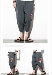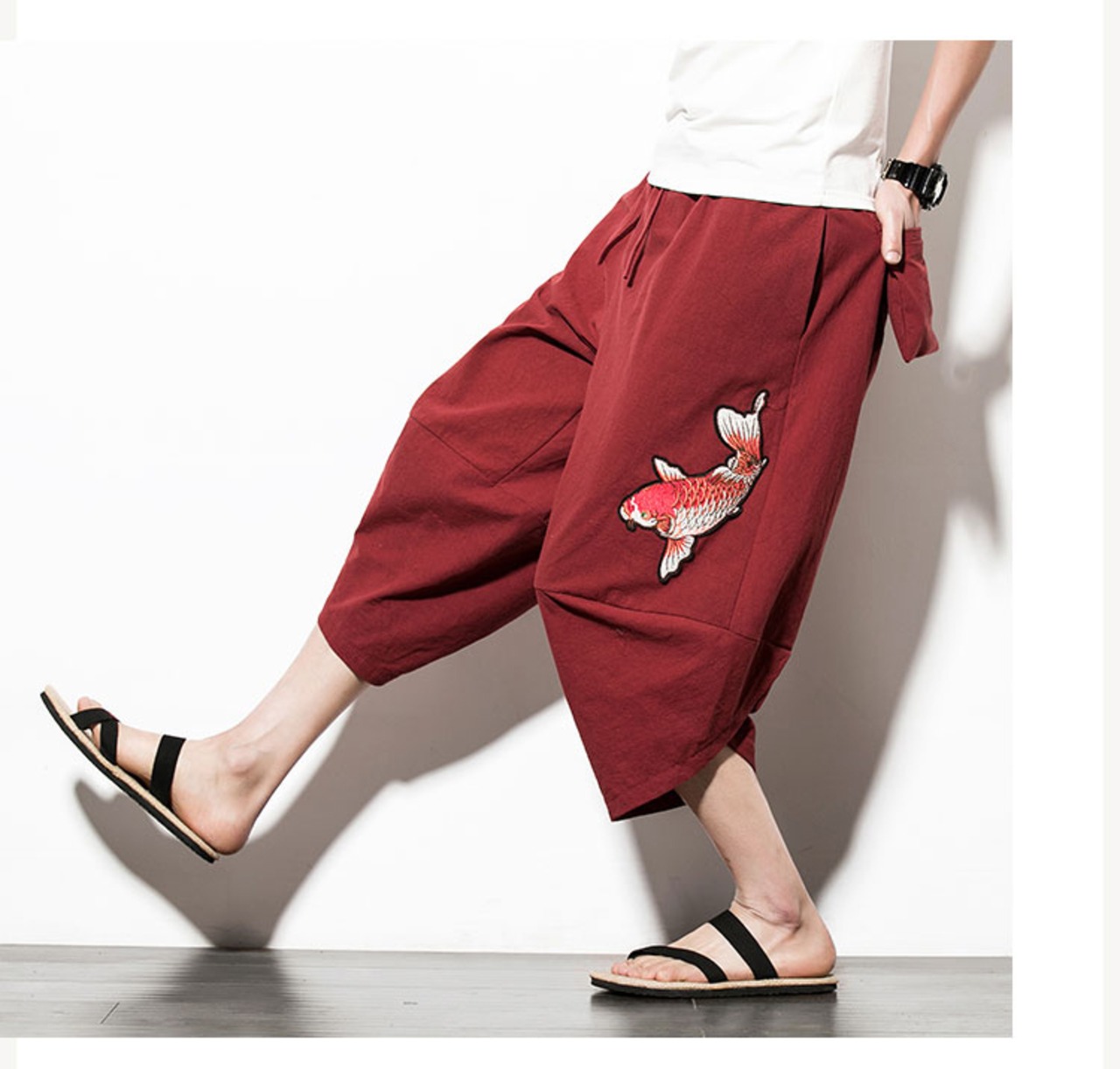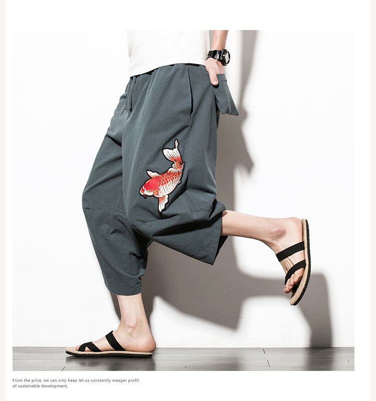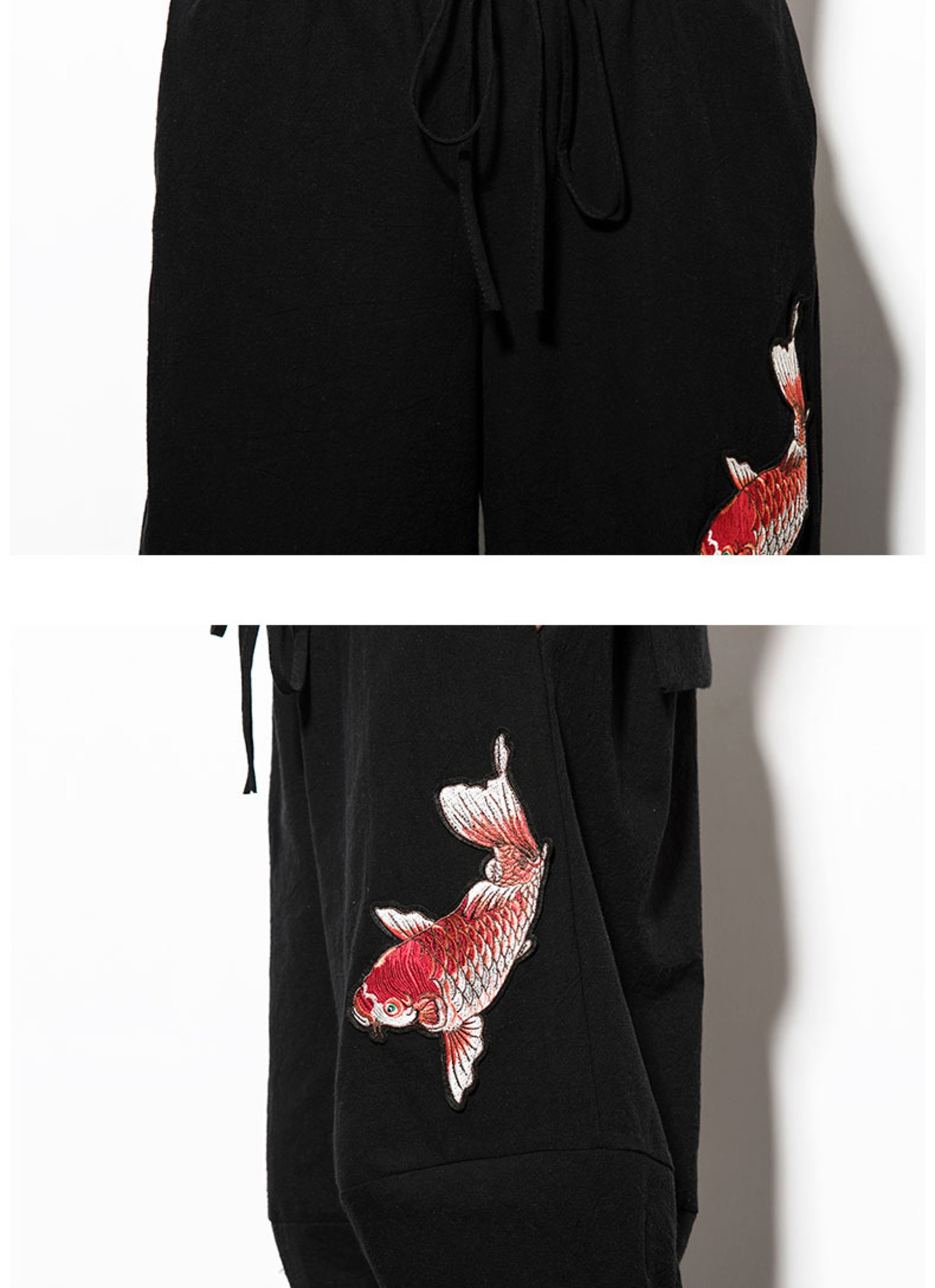 鯉の刺繍が華やかでお洒落な、中華風サルエルパンツです。