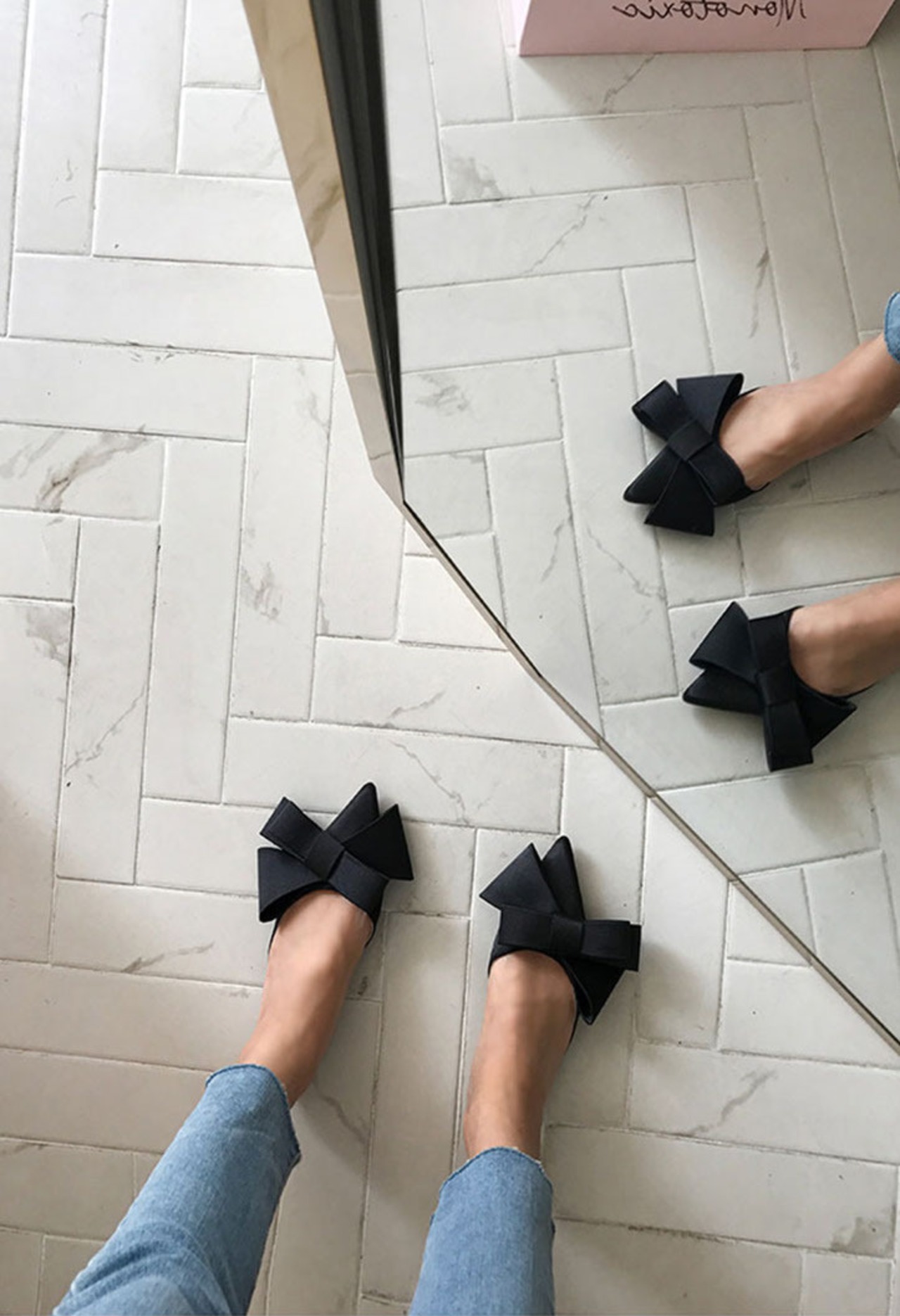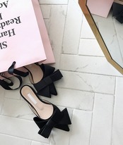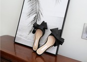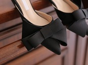 大きなリボンモチーフがポイントのポインテッドトゥパンプスです。