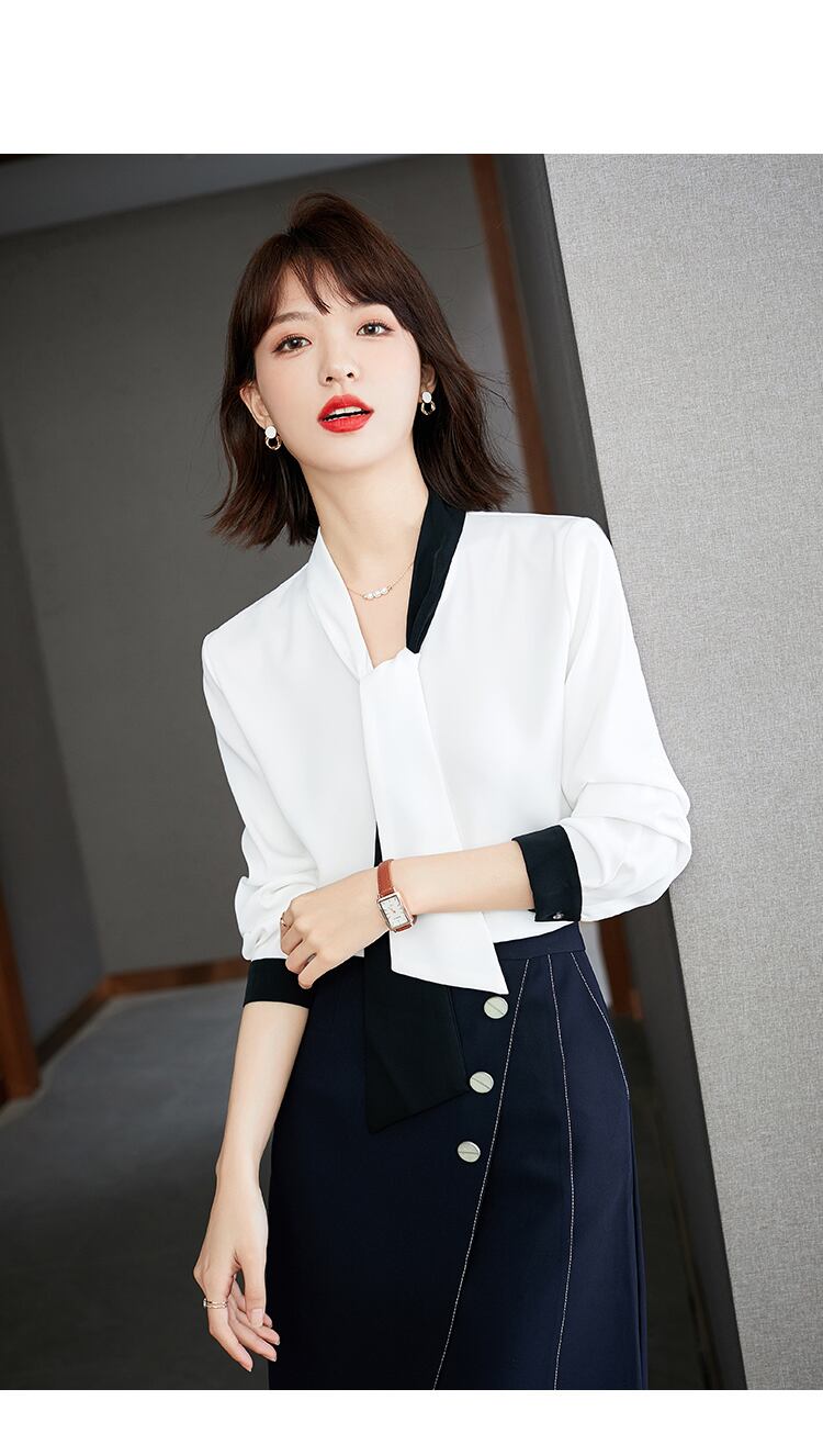 トップス シャツ ブラウス 袖あり 長袖 Vネック 襟付き ボウタイ シフォン かわいい 大人可愛い きれいめ シンプル カジュアル 大人 上品 おしゃれ お洒落 大人女子 こなれ感 キュート ガーリー クール エレガント モダン 抜け感 フェミニン ポリエステル 無地 春 夏 レディース 女性用 OL 通勤 学生 通学 デート お出かけ 女子会 休日 着回し 普段使い モテ プレゼント ギフト 定番 S M L XL 2XL 黒 ブラック バイカラー