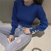 トップス ニットソー セーター プルオーバー 袖あり 長袖 ボリューム袖 パフスリーブ ロングカフス ディープカフス ラウンドネック 伸縮性 アクリル かわいい 大人可愛い きれいめ シンプル カジュアル 大人 上品 おしゃれ お洒落 エキゾチック 大人女子 こなれ感 キュート ガーリー 個性的 エレガント モダン フェミニン 無地 春 秋 冬 レディース 女性用 デート お出かけ 女子会 休日 着回し 普段使い 楽ちん モテ プレゼント ギフト 定番