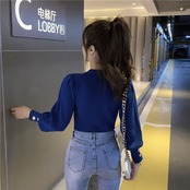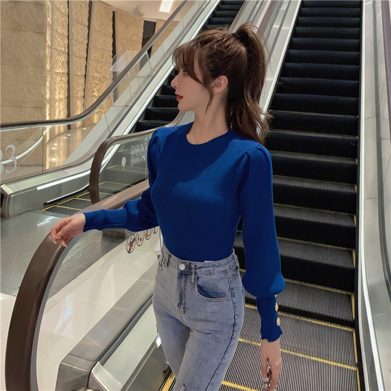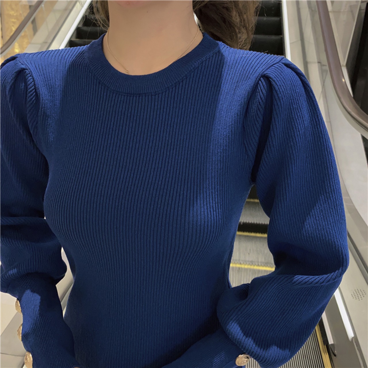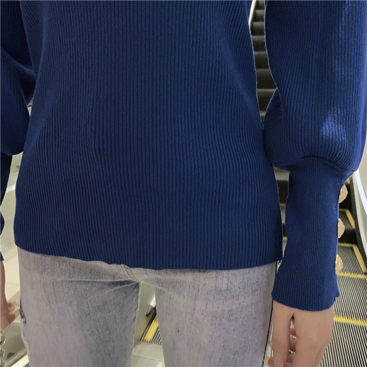 ボリューミーなパフスリーブとディープカフスが特徴的なセーターです。