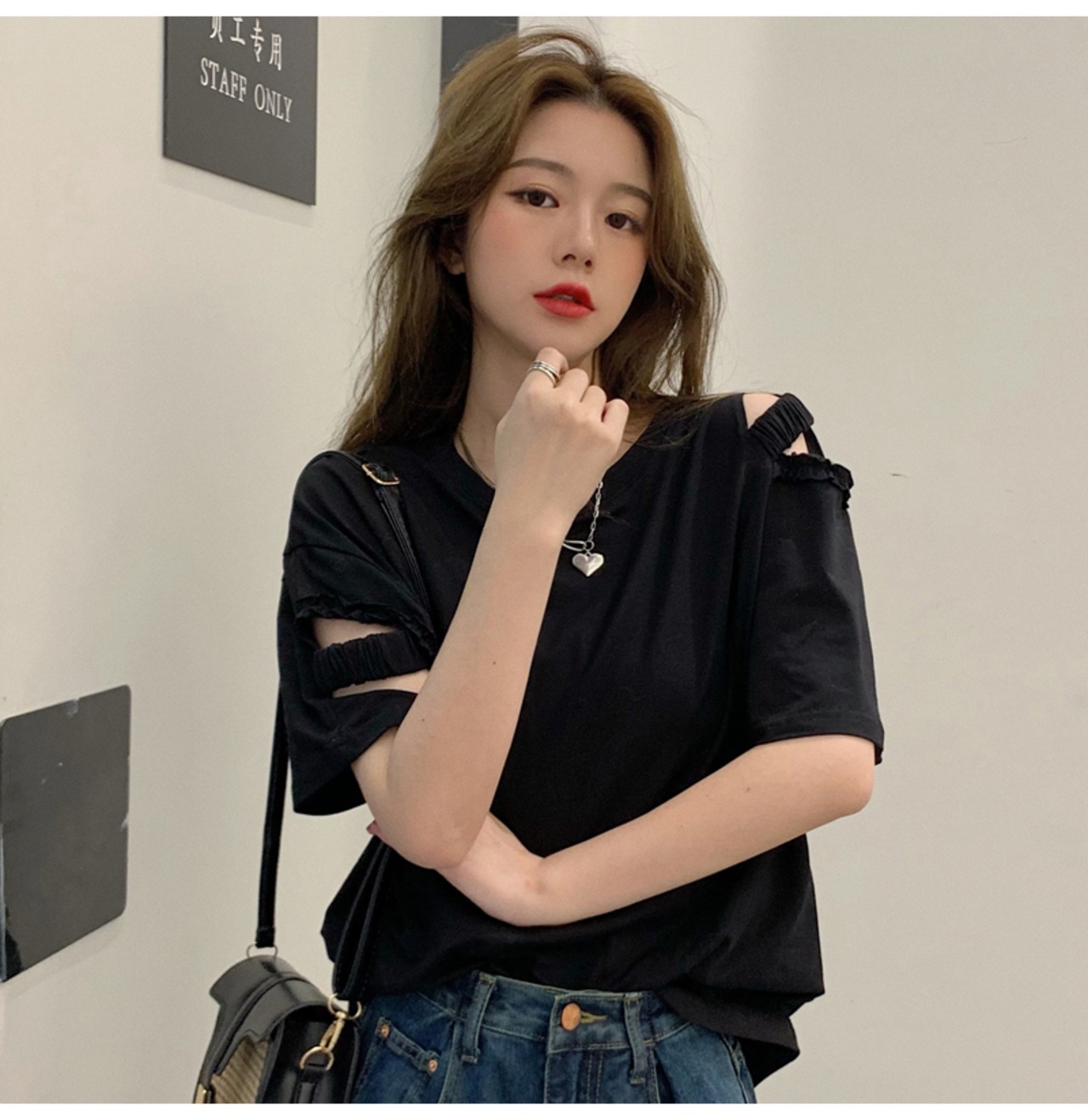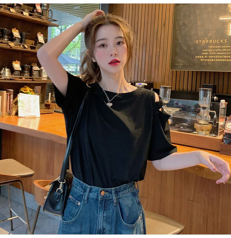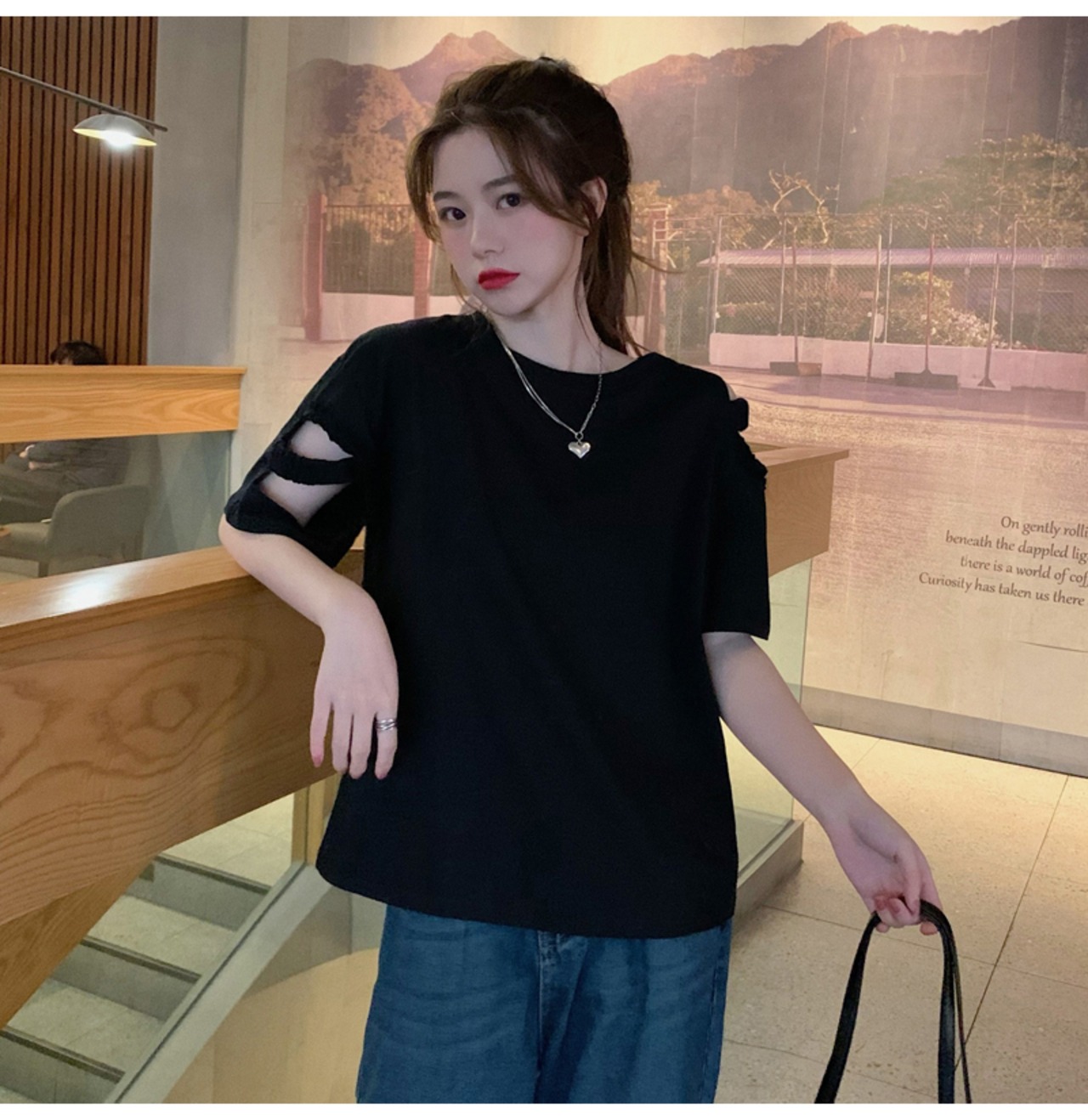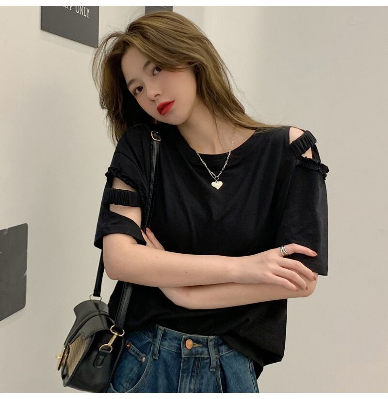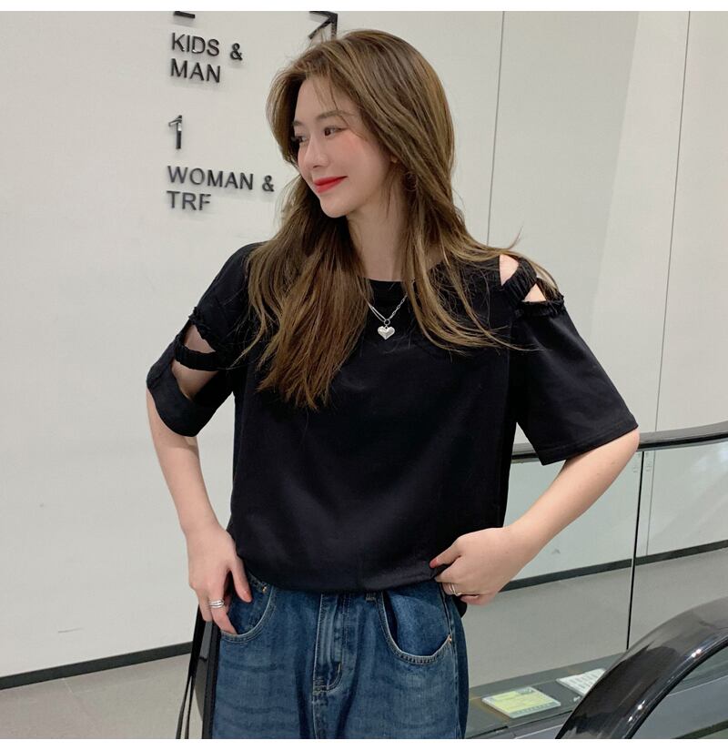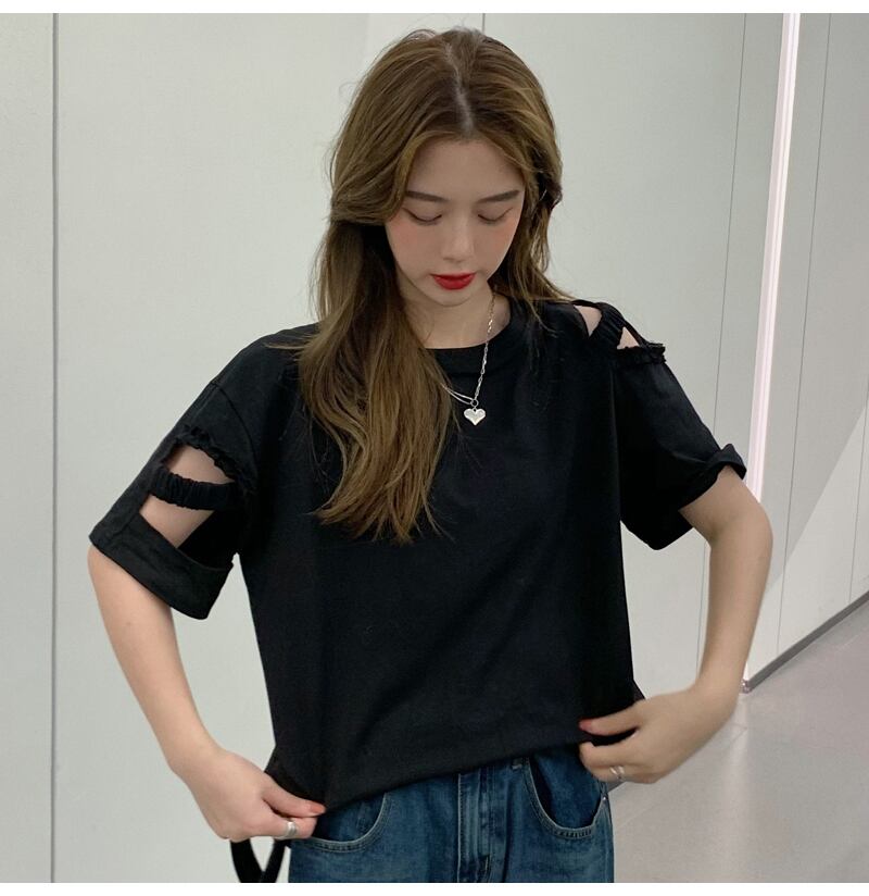 トップス Tシャツ カットソー 袖あり 半袖 ラウンドネック かわいい 大人可愛い カジュアル 大人 おしゃれ お洒落 かっこいい 大人可愛い 大人女子 こなれ感 ラフ メンズライク ボーイッシュ クール モード系 無地 夏 10代 20代 レディース 女性用 デート お出かけ 女子会 お泊まり 休日 アウトドア リゾート 旅行 ガーデン 着回し 普段使い コーデ スタイル 楽ちん ダメージ 穴あき M L XL 黒 ブラック