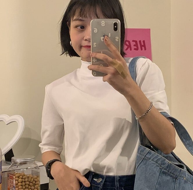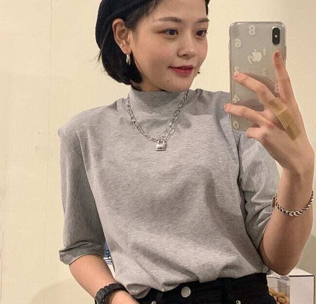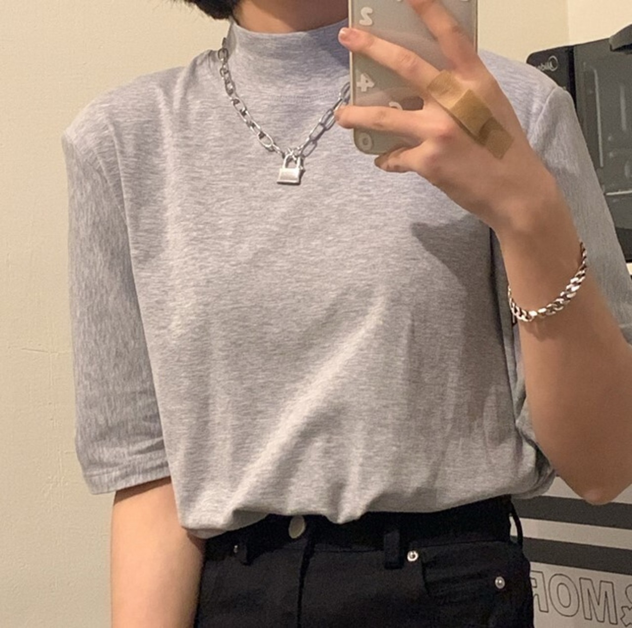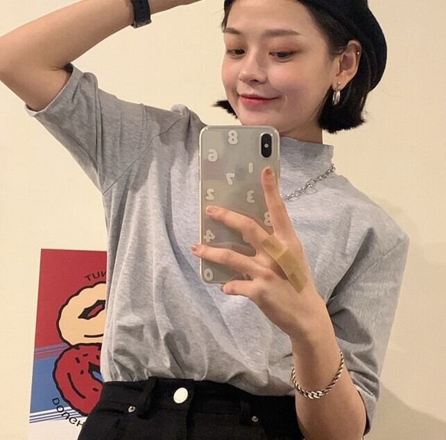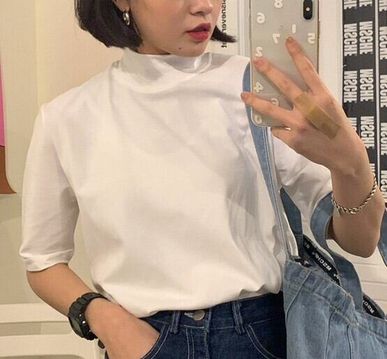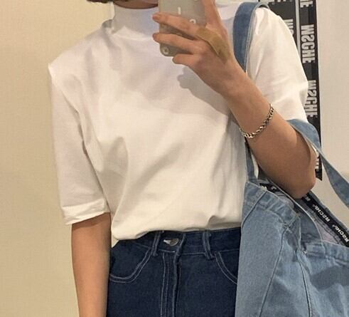トップス Tシャツ カットソー 袖あり 5分袖 ハイネック 綿 コットン かわいい 大人可愛い シンプル カジュアル 大人 おしゃれ お洒落 かっこいい レトロ 大人可愛い 大人女子 こなれ感 ラフ 無地 春 夏 秋 10代 20代 レディース 女性用 学生 通学 デート お出かけ 女子会 お泊まり 休日 アウトドア リゾート 旅行 ガーデン 着回し 普段使い コーデ スタイル 楽ちん S M L 白 ホワイト 黒 ブラック 灰色 グレー