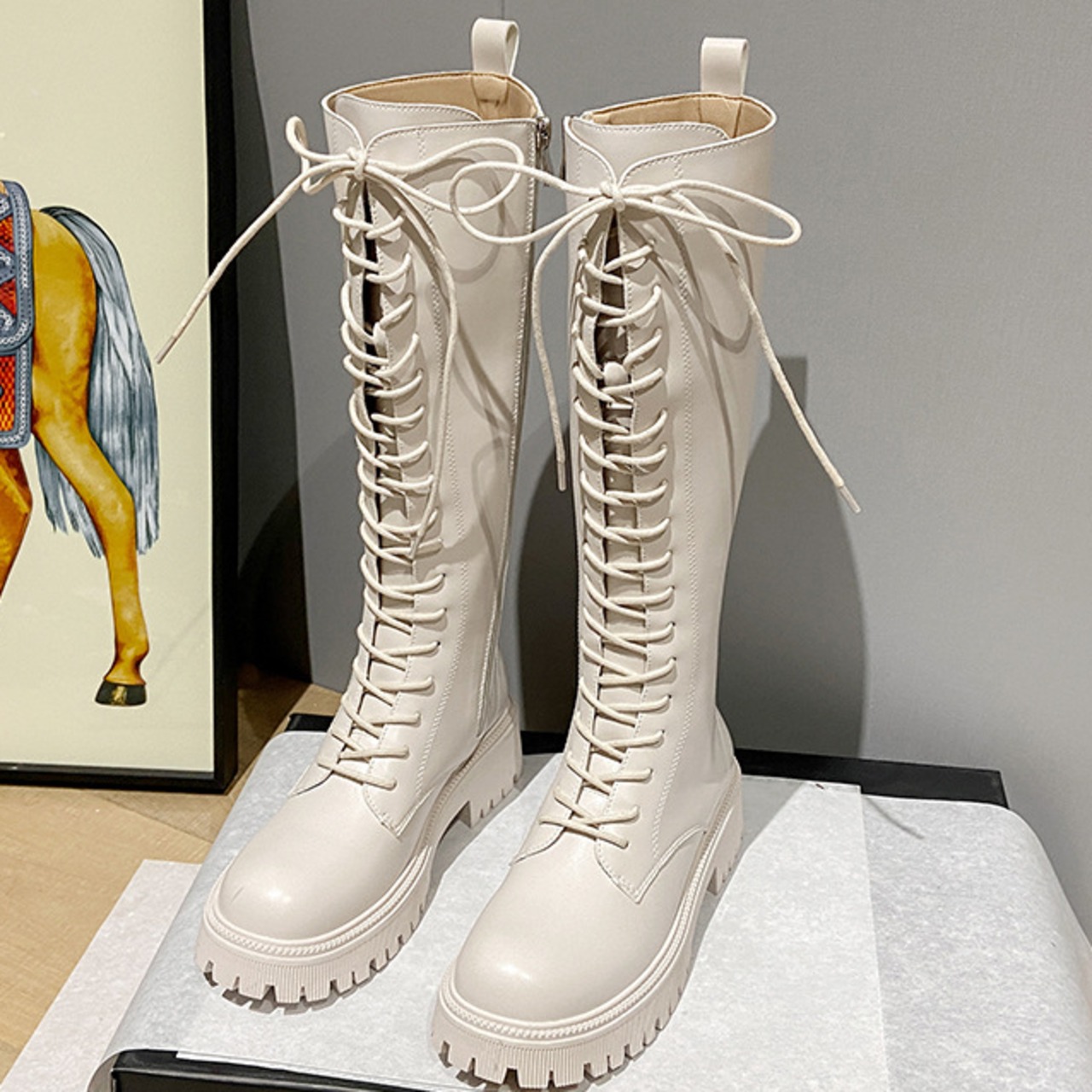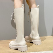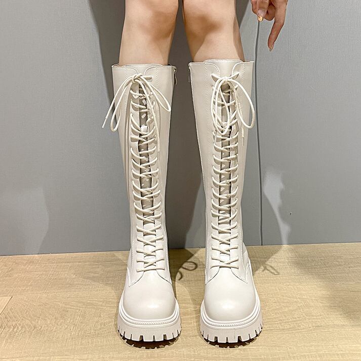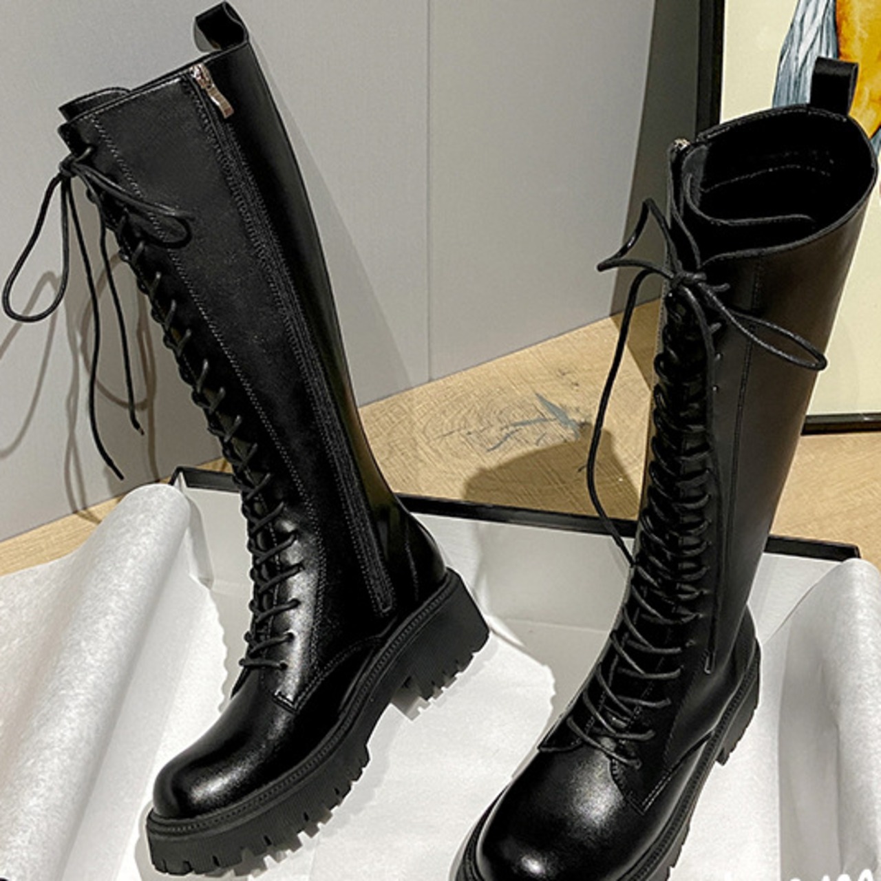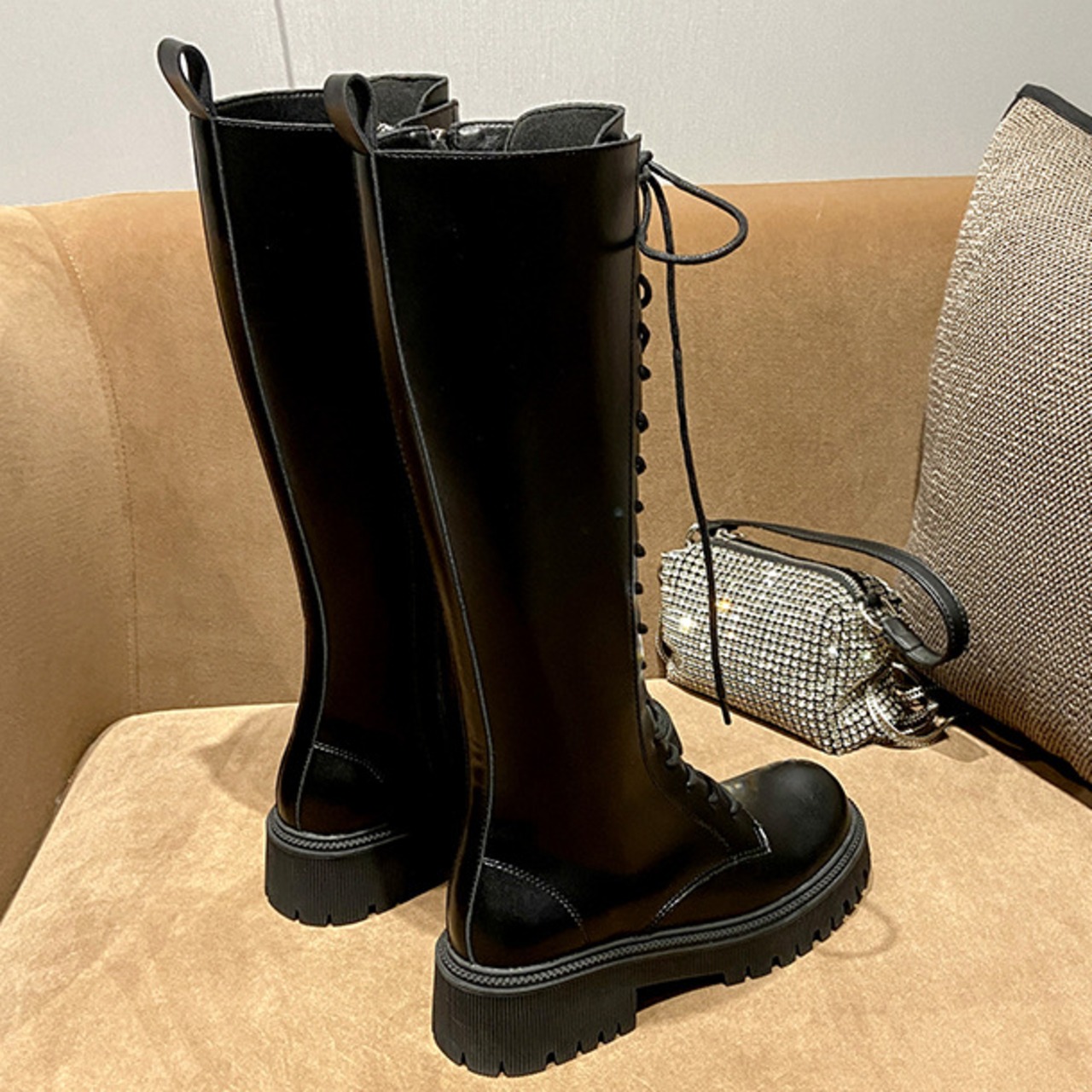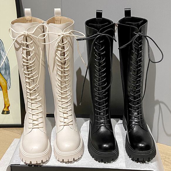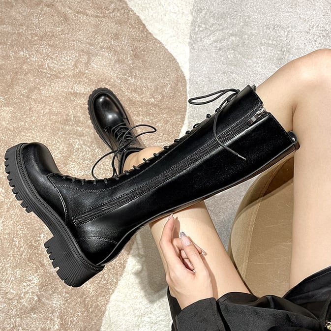 ブーツ ロングブーツ 編み上げブーツ 5cmヒール ラバーソール レースアップ ラウンドトゥ 歩きやすい 履きやすい 美脚 脚長 ファスナー サイドジッパー 大人可愛い シンプル カジュアル 大人 おしゃれ キュート ガーリー 女っぽ 主役級 存在感 無地 秋 冬 レディース 女性用 ママ 女の子 定番