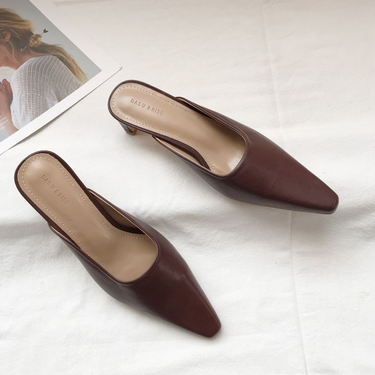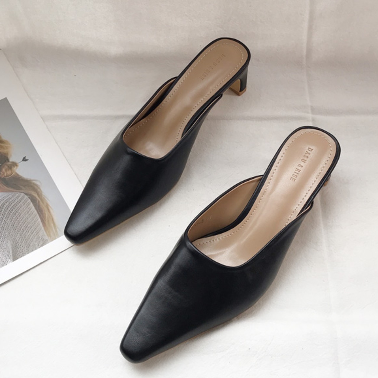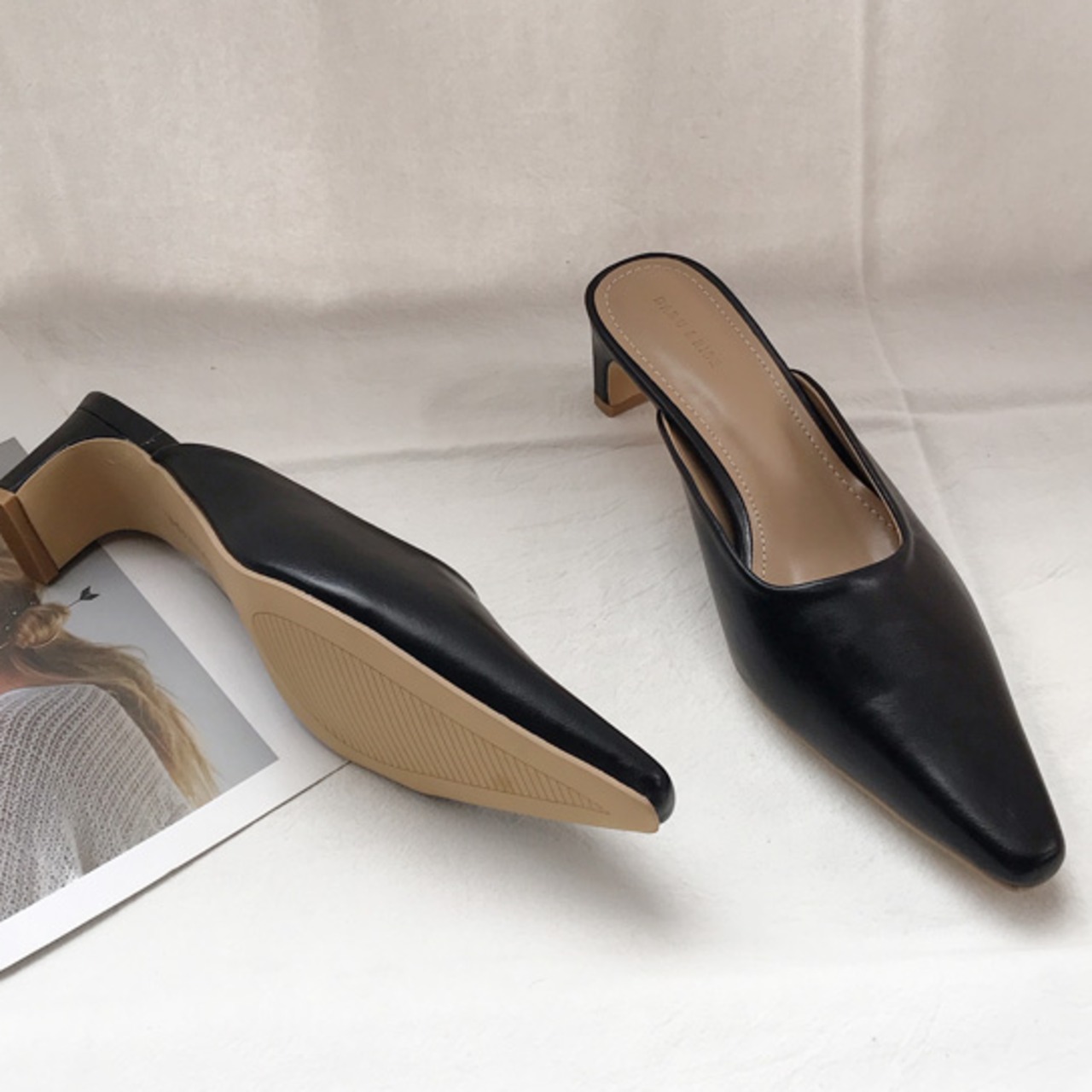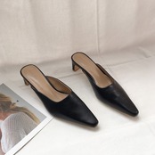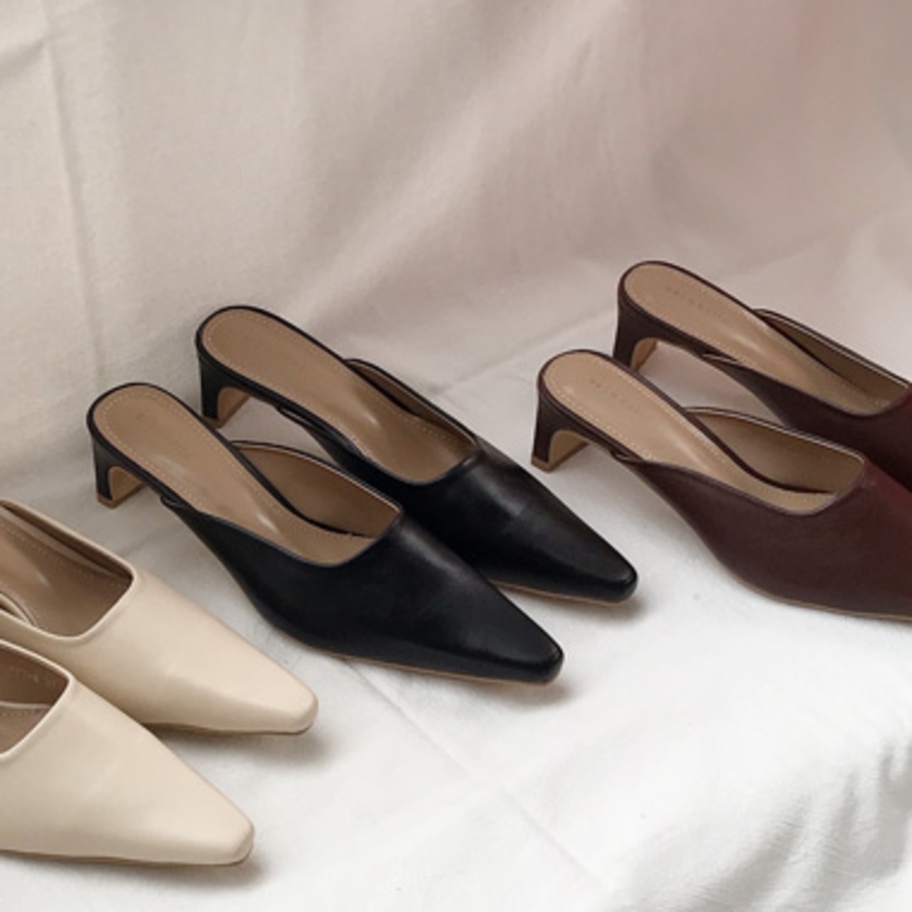 オーソドックスなポインテッドトゥのミュールパンプスです。